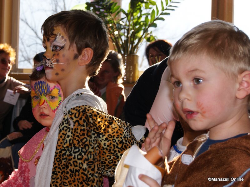Die kleinen „Faschingsnarren“ – zwischen ein und zehn Jahre alt – kamen großteils mit ihren erwachsenen Begleitpersonen in den Scherfler Saal des Europeums, der – was das Platzangebot betrifft – angesichts des Andrangs allerdings ebenso an seine Grenzen stieß. Nach der Eröffnung durch den Bürgermeister der Stadt Mariazell, Josef Kuss, wurde der Nachmittag mit lustigen Spielen zum Thema „Fünf Kontinente“, Musik, Faschingsjause und Glücksfischen zum besonderen Erlebnis für alle Kinder.