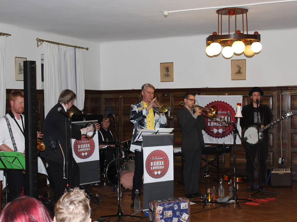 Der Saal im Hotel Drei Hasen war am Freitag, 19. Mai 2017 beim Konzert der St. Barbara Dixielanders prall gefüllt. Von den ersten Ragtimes der Bourbon Street über die Blütezeit der Swing-Ära bis hin zu modernen Soul-, Funk- und Popnummern, ob Glenn Miller, Louis Prima, Ray Charles, Stevie Wonder, Hildegard Knef, Max Raabe oder Amy Winehouse: Alles wurde von dem Musiker-Septett aus dem mittleren Mürztal gnadenlos „verdixelt“.