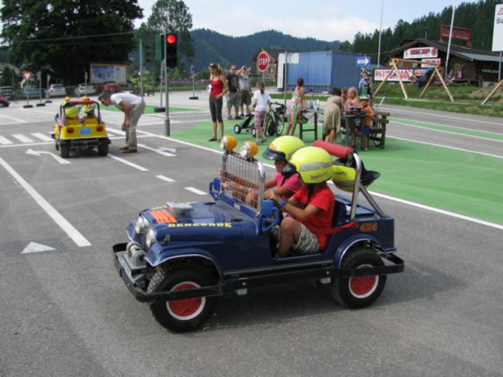 Der Schulverkehrsgarten direkt neben dem Sparmarkt Steiner in St. Sebastian ist jederzeit auf eigene Gefahr frei zugänglich. In den Sommerferien ist es überdies jeden Mittwoch ab 18:00 Uhr möglich, auch mit den Elektroautos zu fahren.