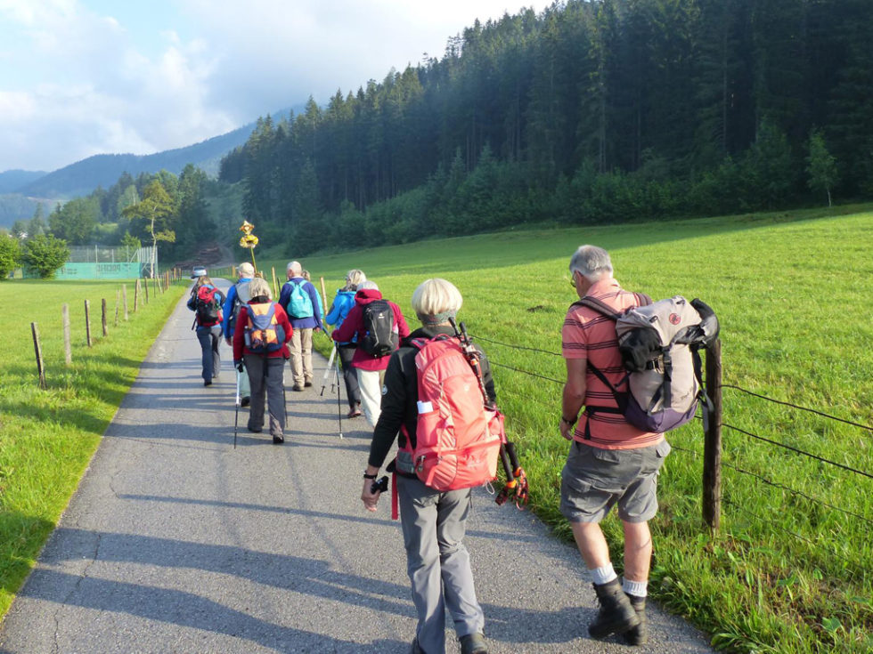 Nachdem das Gepäck in den Transporter geladen war, machten sich die Wallfahrer auf den Weg. Im Gegensatz zur verregneten und kühlen Wallfahrt im Vorjahr war für heuer ein perfektes, sonniges aber nicht zu heißes Wetter vorhergesagt.