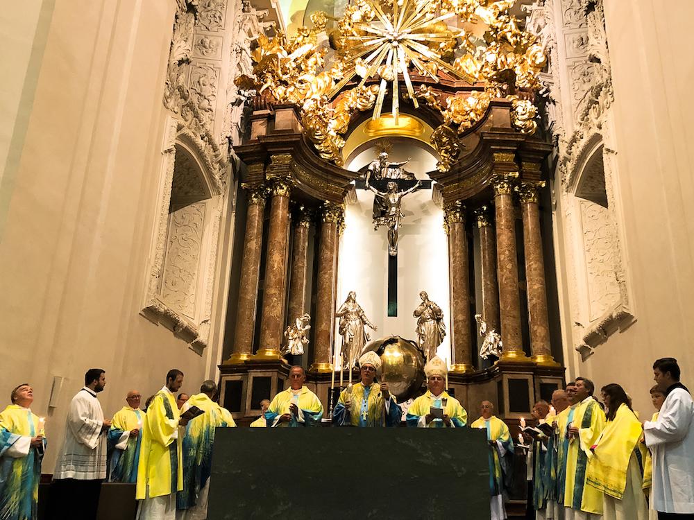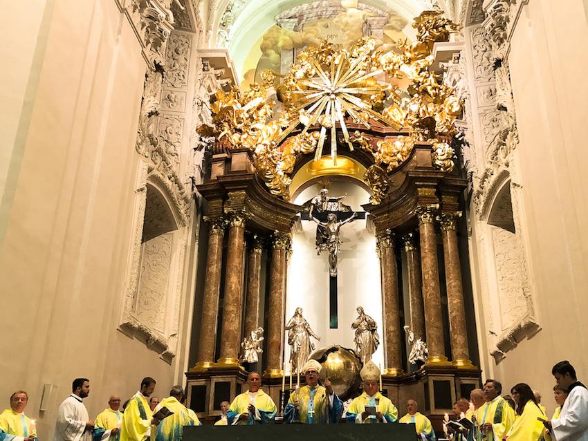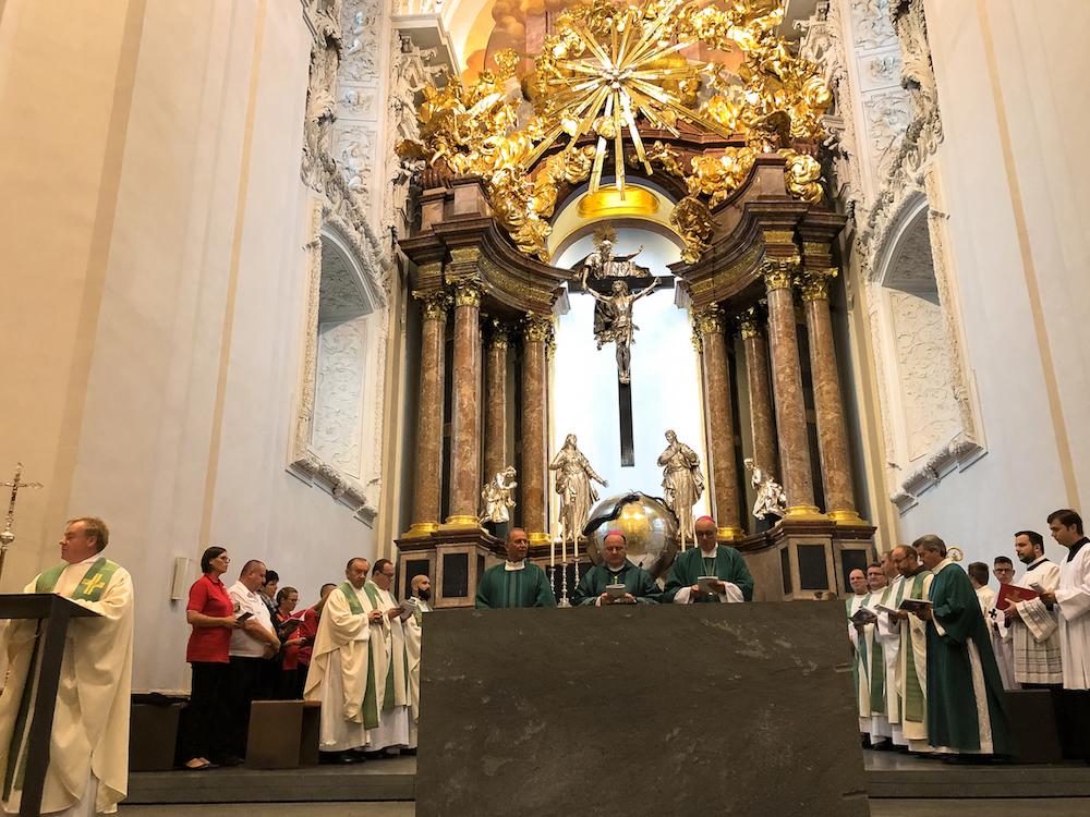 Am Freitag zogen die Wallfahrer feierlich in die Basilika ein, der Wallfahrergottesdienst wurde von Bischofsvikar Stefan Vukits OMV am Gnadenaltar abgehalten. Pater Superior Dr. Michael Staberl begrüßte die Wallfahrtgemeinschaft ganz herzlich, besonders die Pilger aus Nadar – sie erhielten dann am Sonntag bis zur nächsten Kroatenwallfahrt die Wandermuttergottes. „Nadar wird für ein Jahr zu einem kleinen Mariazell im kroatischen Ungarn“, so Michael Staberl, Superior der Mariazeller Basilika.