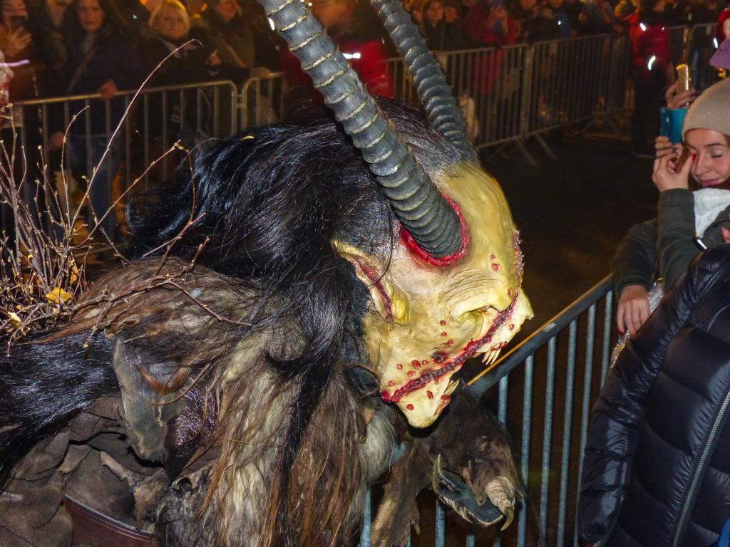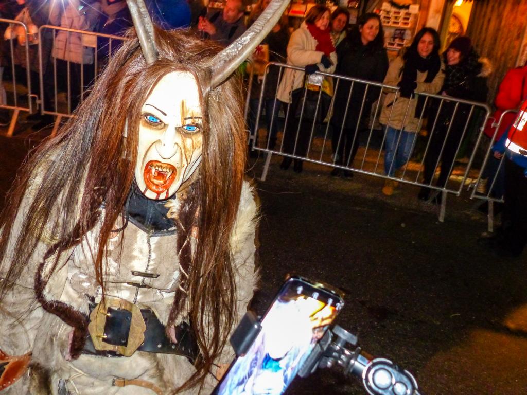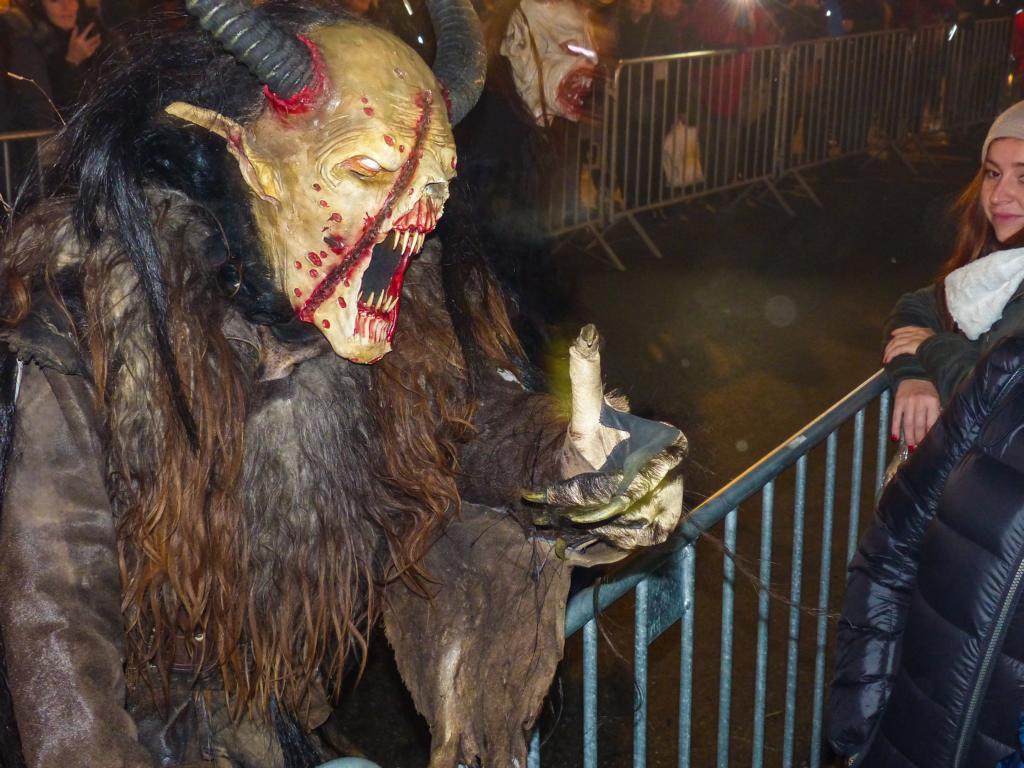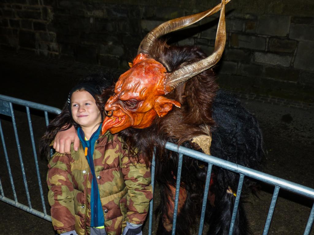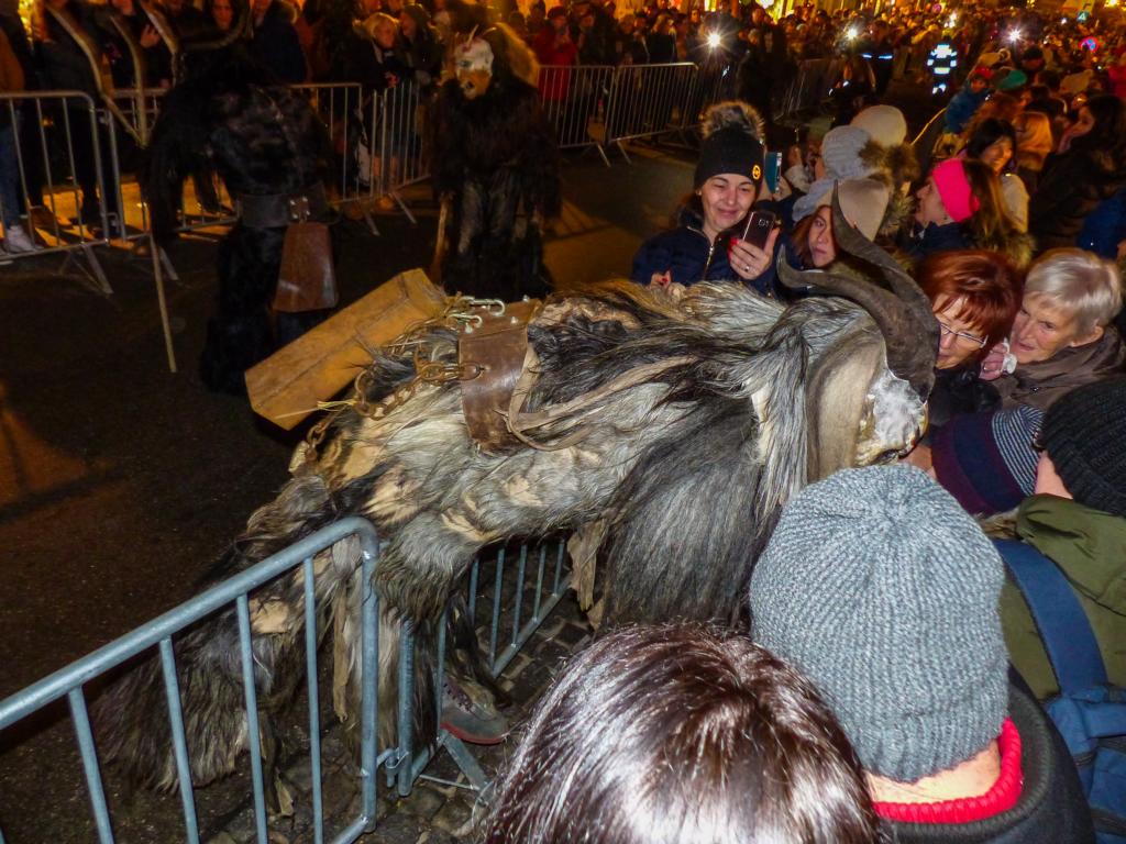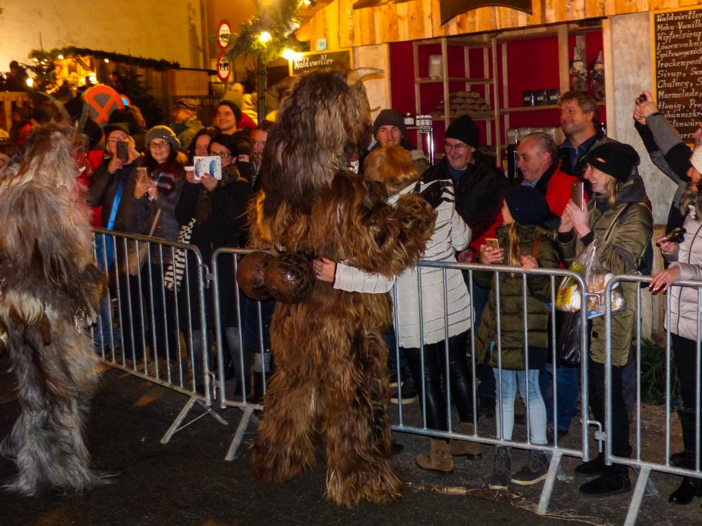So furchterregend der Anblick der kunstvoll geschnitzten Masken teilweise auch war – die Krampusse in ihren schweren Kostümen waren zwischendurch sogar für Streicheleinheiten, Umarmungen und Fotoshootings zu haben. Ab und zu musste natürlich auch das Publikum erschreckt werden, doch solche Showeinlagen gehören bei einem Krampuslauf einfach dazu – und werden von den Zuschauern in Wirklichkeit ja auch erwartet.