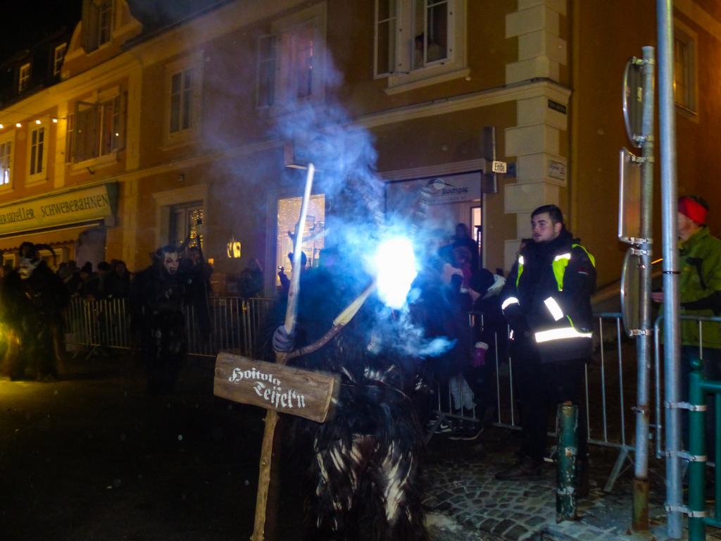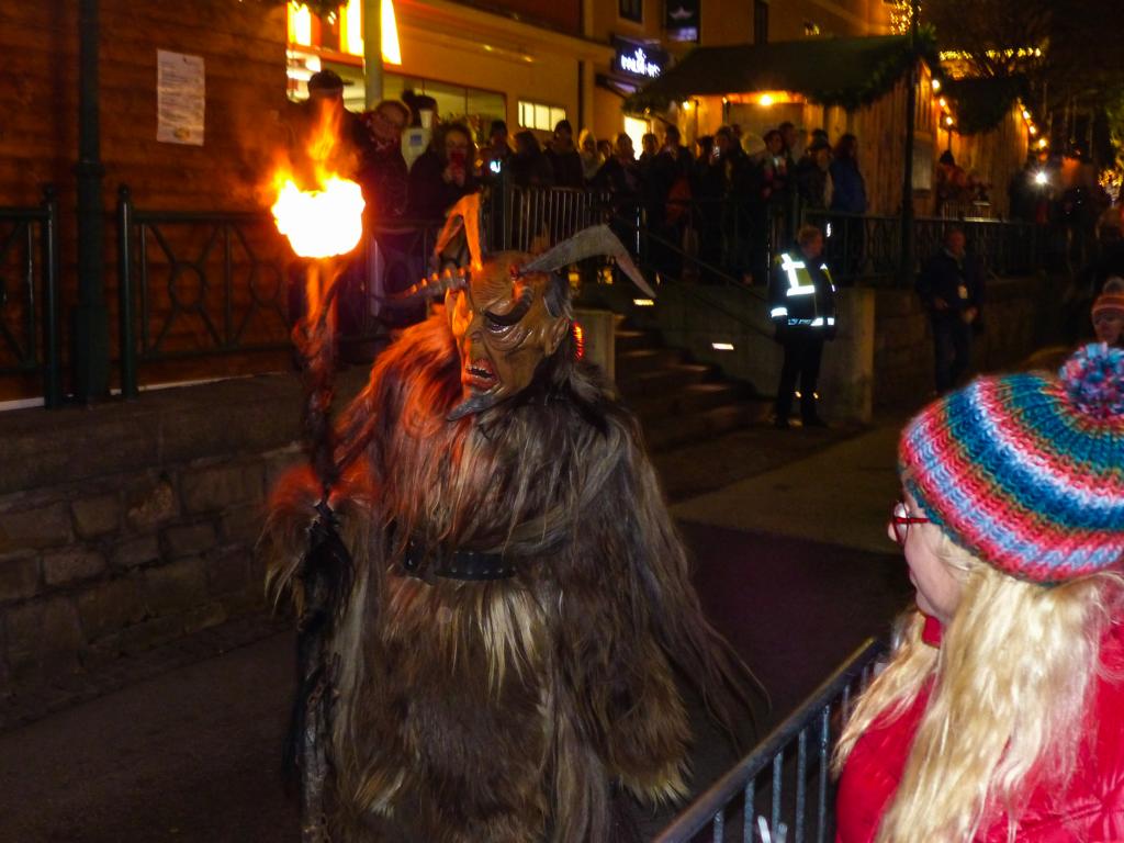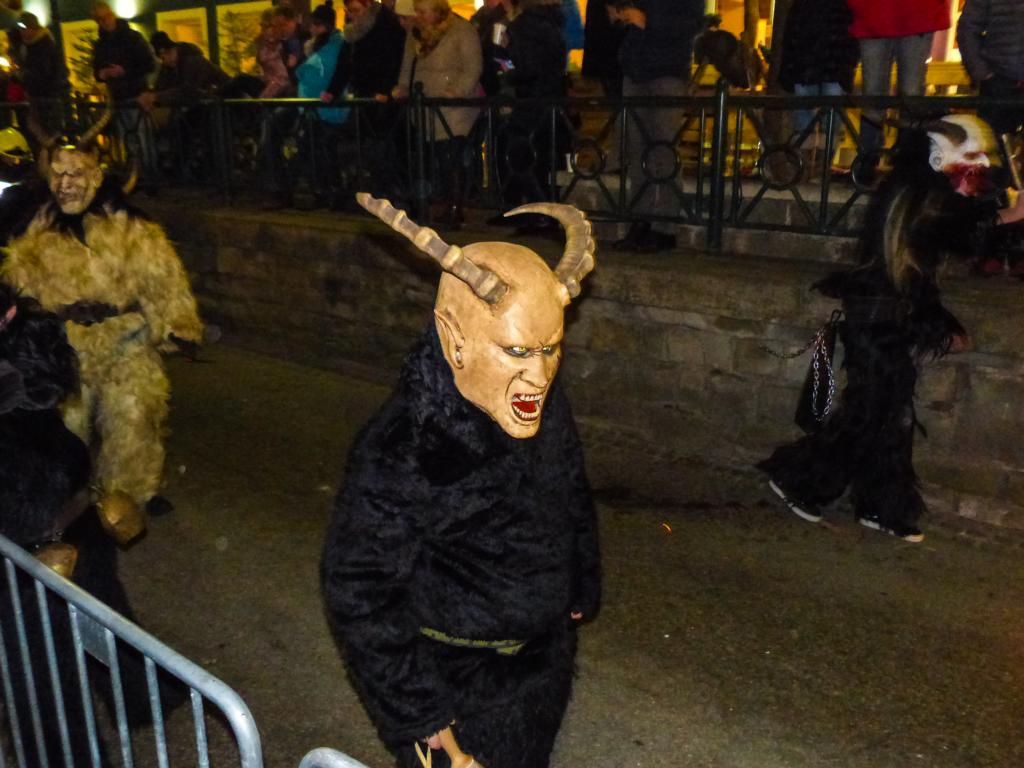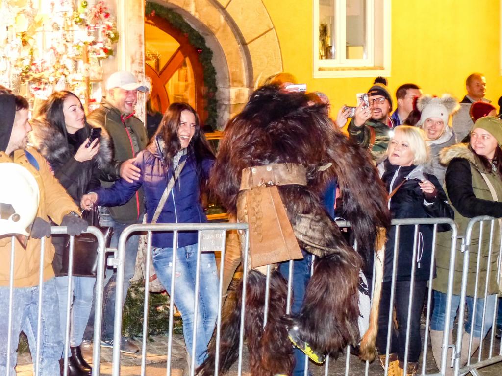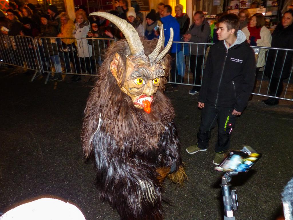 So furchterregend der Anblick der kunstvoll geschnitzten Masken teilweise auch war – die Krampusse in ihren schweren Kostümen waren zwischendurch sogar für Streicheleinheiten, Umarmungen und Fotoshootings zu haben. Ab und zu musste natürlich auch das Publikum erschreckt werden, doch solche Showeinlagen gehören bei einem Krampuslauf einfach dazu – und werden von den Zuschauern in Wirklichkeit ja auch erwartet.