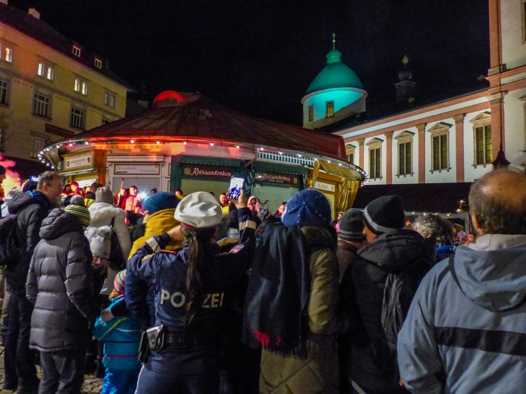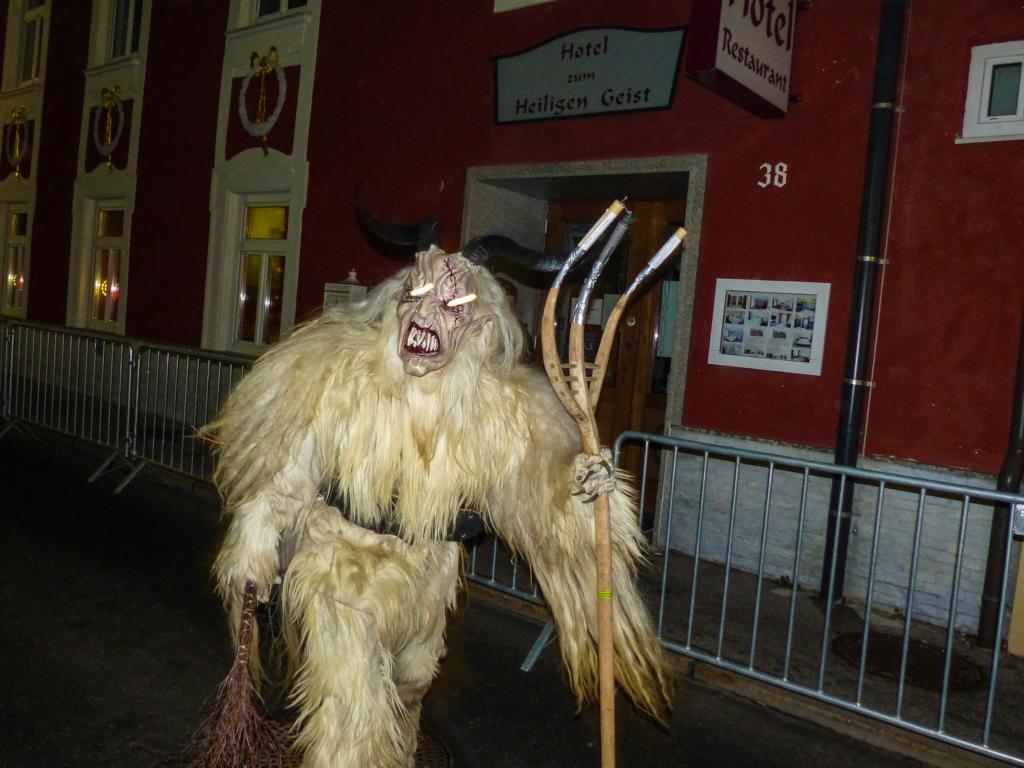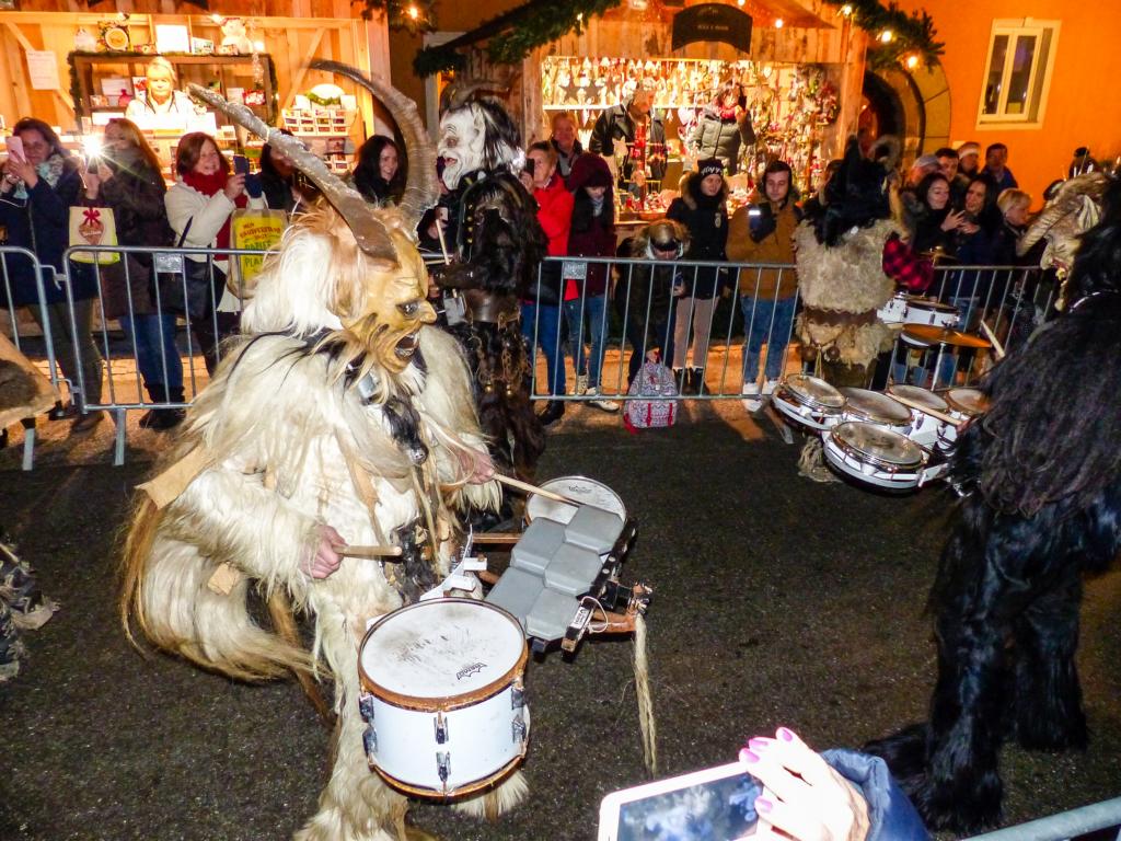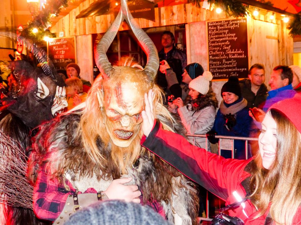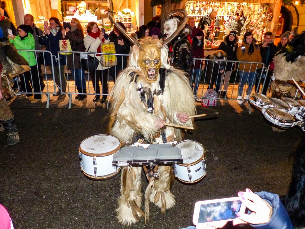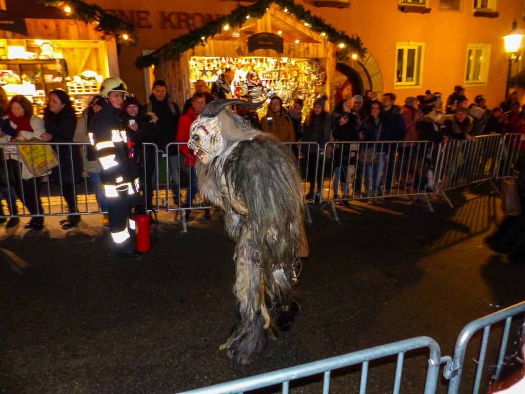 So furchterregend der Anblick der kunstvoll geschnitzten Masken teilweise auch war – die Krampusse in ihren schweren Kostümen waren zwischendurch sogar für Streicheleinheiten, Umarmungen und Fotoshootings zu haben. Ab und zu musste natürlich auch das Publikum erschreckt werden, doch solche Showeinlagen gehören bei einem Krampuslauf einfach dazu – und werden von den Zuschauern in Wirklichkeit ja auch erwartet.