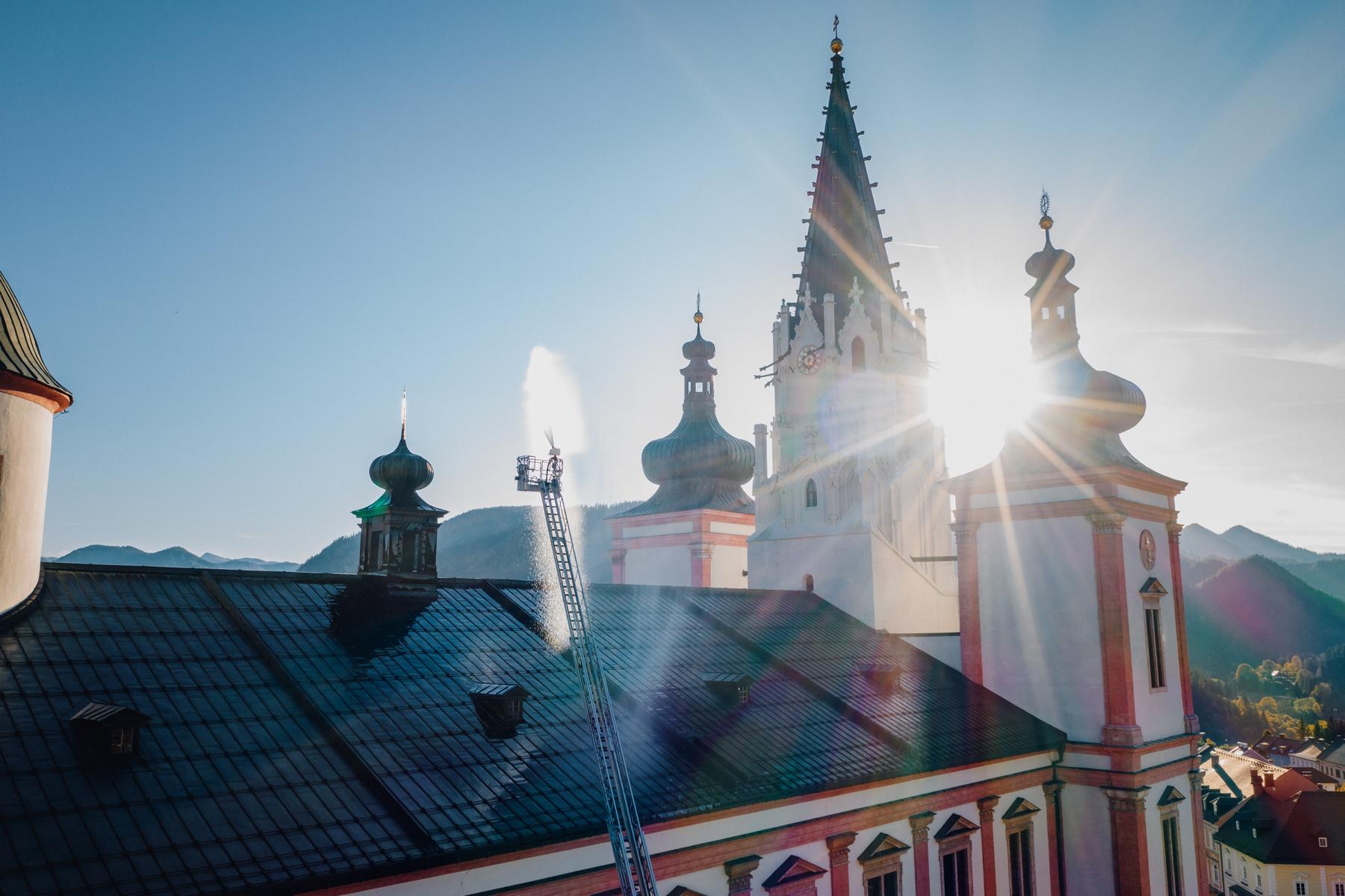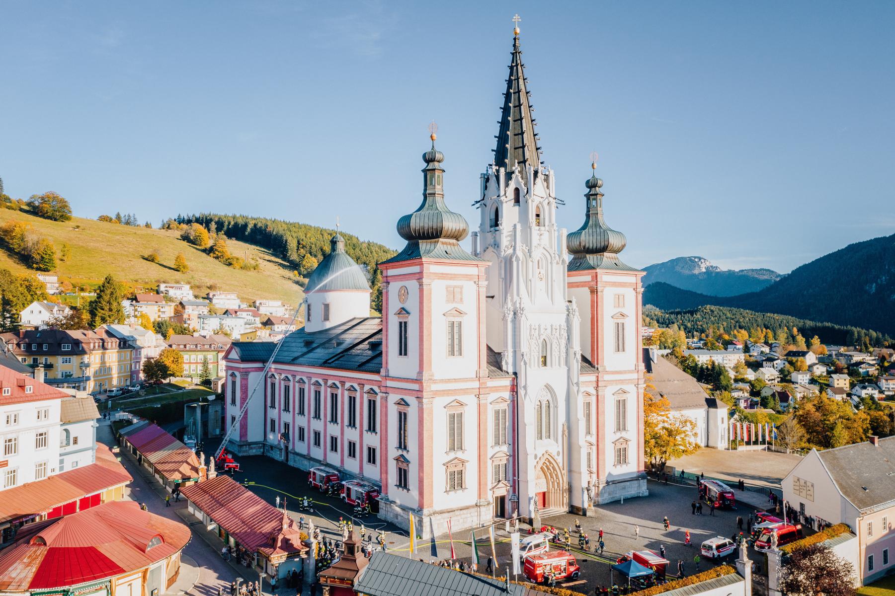 Der verheerende Brand der Kathedrale Notre-Dame in Paris im April war der konkrete Anlass nach einigen Jahren wieder eine großangelegte Feuerwehrübung in und um die größte Kirche der Steiermark zu veranstalten. Der wuchtige Barockbau mit seinen drei Türmen wird jährlich von etwa einer Million Wallfahrern und Touristen besucht und stellt einen unersetzbaren kunsthistorischen Schatz dar.