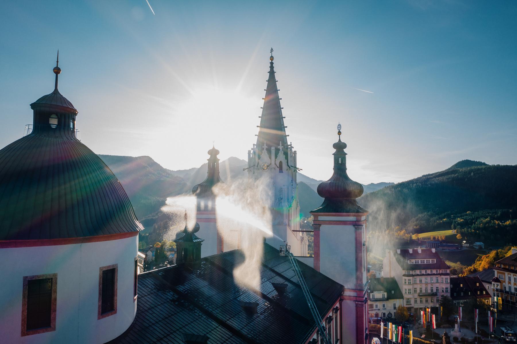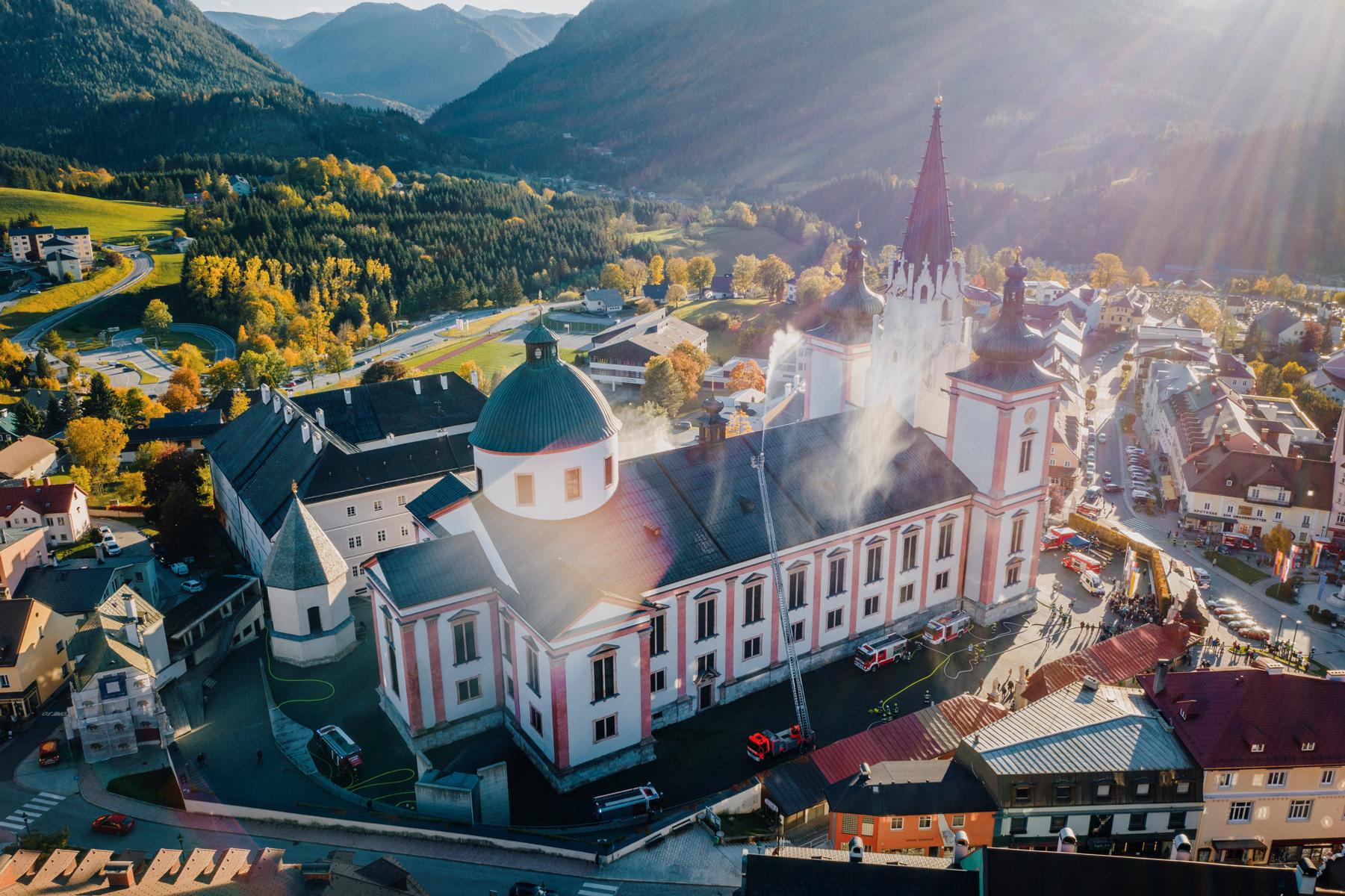Großübung der Feuerwehren: Brand in der Basilika Mariazell