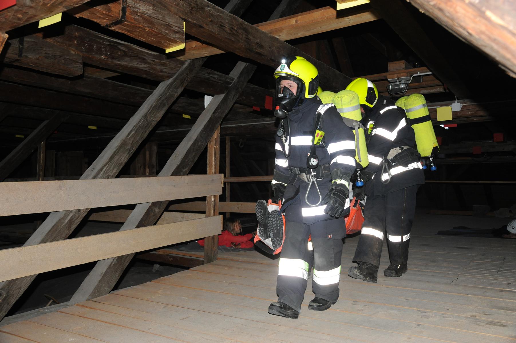 Große körperliche Herausforderung: Eine hohe körperliche Anstrengung war der Rettungseinsatz der neun Atemschutztrupps, die durch das weite barocke Stiegenhaus erst bis in den riesigen Dachbodenbereich der 84m langen Kirche vordringen mussten. Ein großer Erfolg war die Rettung aller 13 vermissten Personen und die Übergabe an das Rote Kreuz.