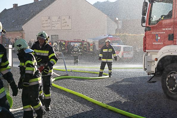 Bundesländerübergreifender Einsatz: Dazu wurden vom Einsatzleiter die Feuerwehren des Abschnittes Mariazell, die Nachbarfeuerwehren aus Niederösterreich, eine Drehleiter und ein Atemschutzfahrzeug angefordert.