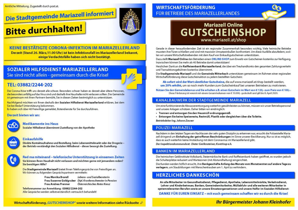 Die Stadtgemeinde Mariazell informiert – Besonnen bleiben