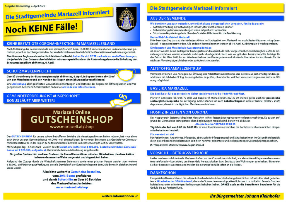Aktuelle Informationen der Stadtgemeinde – Stand 2.4.2020