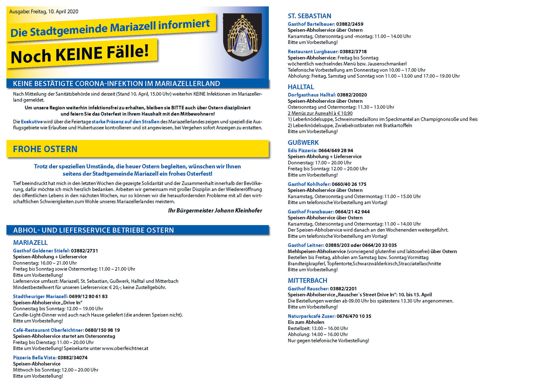 Aktuelle Informationen der Stadtgemeinde – Stand 10.4.2020