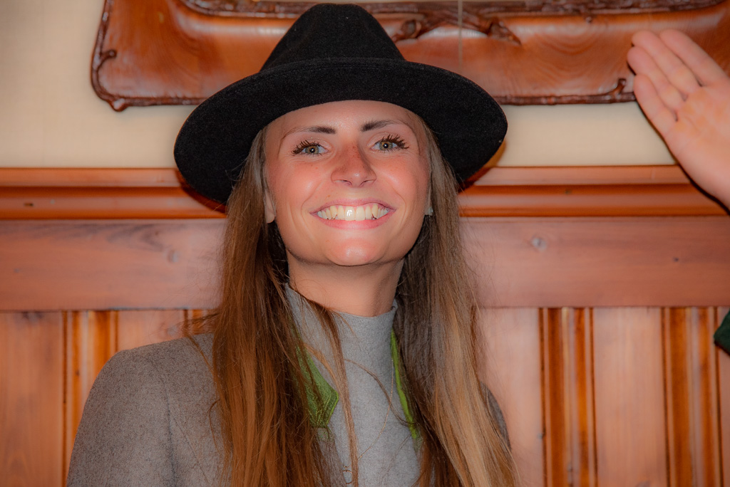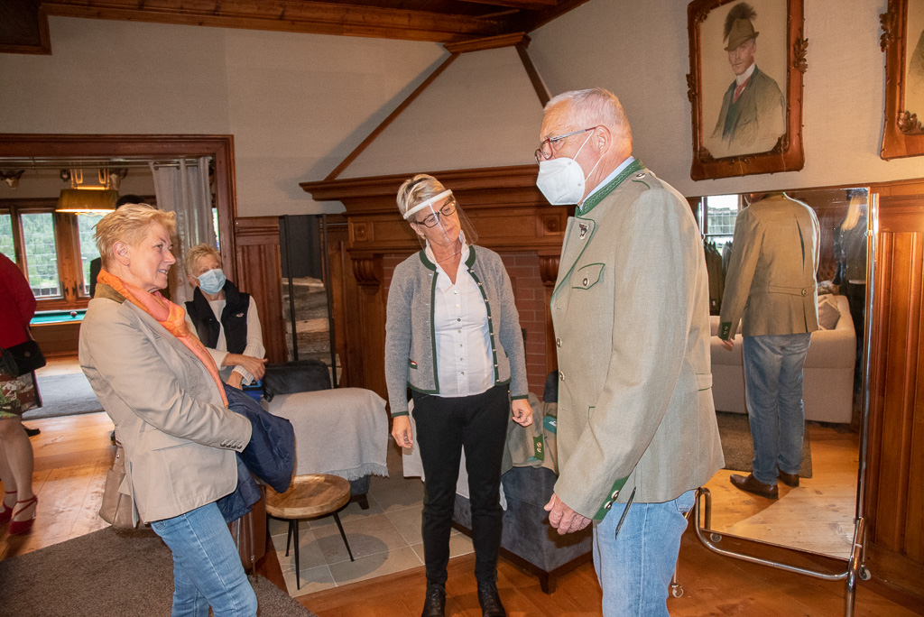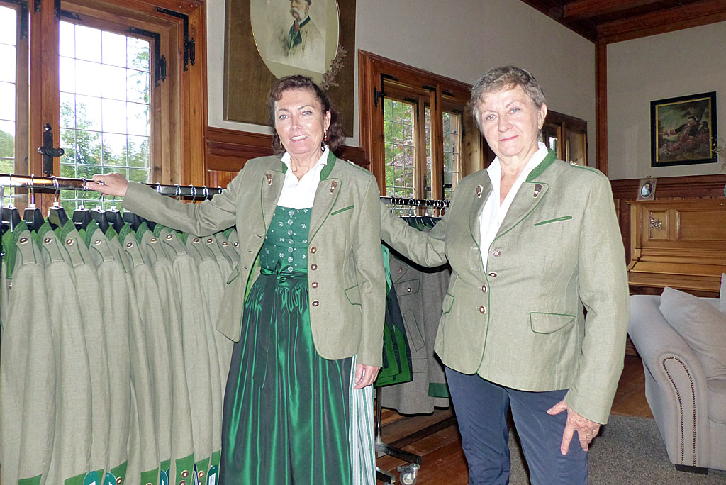 Nach der Präsentation konnen die Jacken unter fachkundiger Betreuung der Mitarbeiter der Firma Arzberger gleich anprobiert und natürlich auch erworben werden, die Holzplättchen wurden von Gabi Arzberger direkt vor Ort auch gleich mit den Namen der neuen stolzen Besitzerinnen versehen.