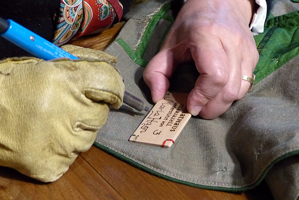 Wie jedes Teil der Kollektion „Heimat zum Anziehen“ hat auch der Mariazeller Jägerleinen Janker für Damen ein Holzschild eingenäht, in welches der Name der Eigentümerin und eine fortlaufende Nummer eingebrannt werden. Von jedem Teil der Kollektion werden € 120.- an das Heimathaus als Unterstützung weitergegeben. Mit einer personalisierten, handgeschriebenen Urkunde dankt das Mariazeller Heimathaus und Familie Arzberger dem Eigentümer für den Kauf.