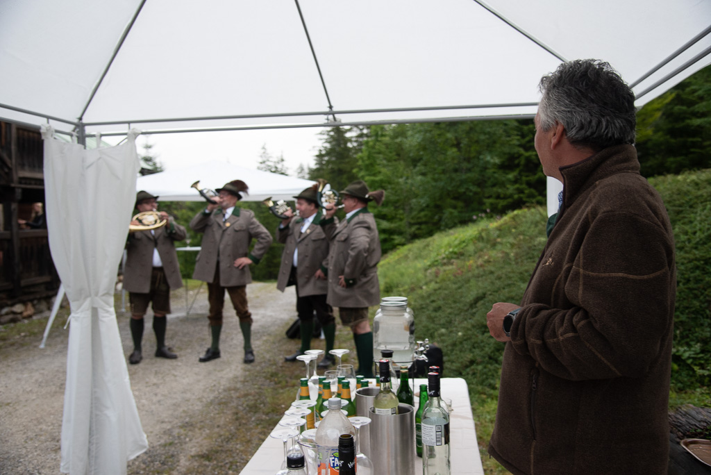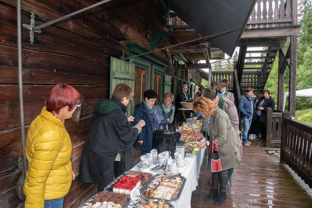 Im Anschluss wurde zu einem regionalen Buffet geladen, geliefert von Mariazeller Land Catering Fam. Krcal, dazu gab es Wein vom Weingut Hagn aus Mailberg. Für die musikalische Umrahmung sorgte ein Quartett der Jagdhornbläsergruppe Mariazell.