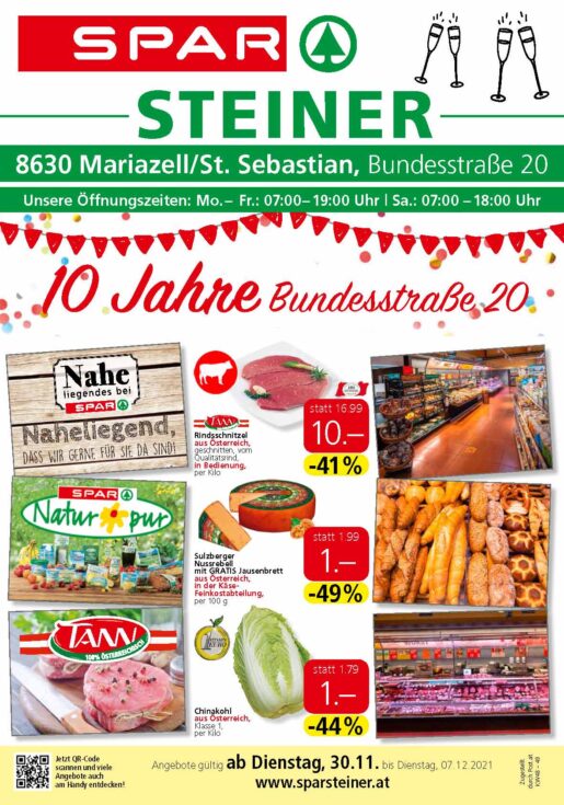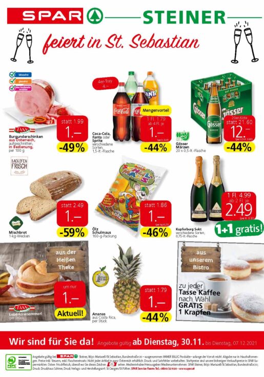 Feiern Sie mit und sichern Sie sich noch bis 7. Dezember 2021 tolle Angebote beim SPAR Markt Steiner: