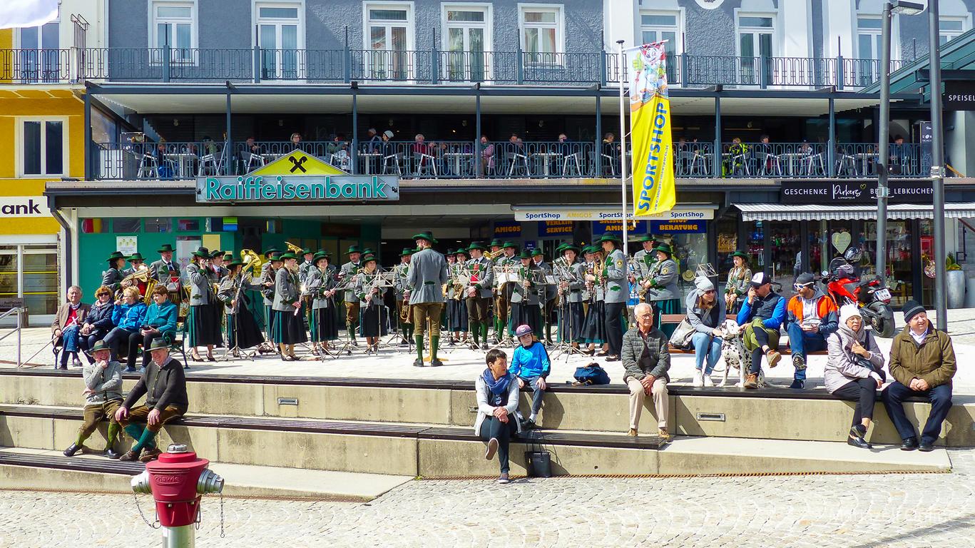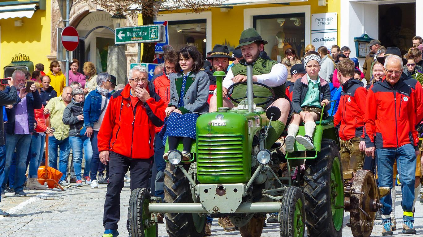 Unterstützung hatten sie dabei auch heuer wieder von Andreas Lasinger mit seinem Steyr Oldtimer Traktor, der den festlich geschmückten Baum an seinen neuen Standort beförderte. Dank der frühlingshaften Temperaturen war auch jede Menge Publikum gekommen und der Hauptplatz war gefüllt, wie schon lange nicht mehr.