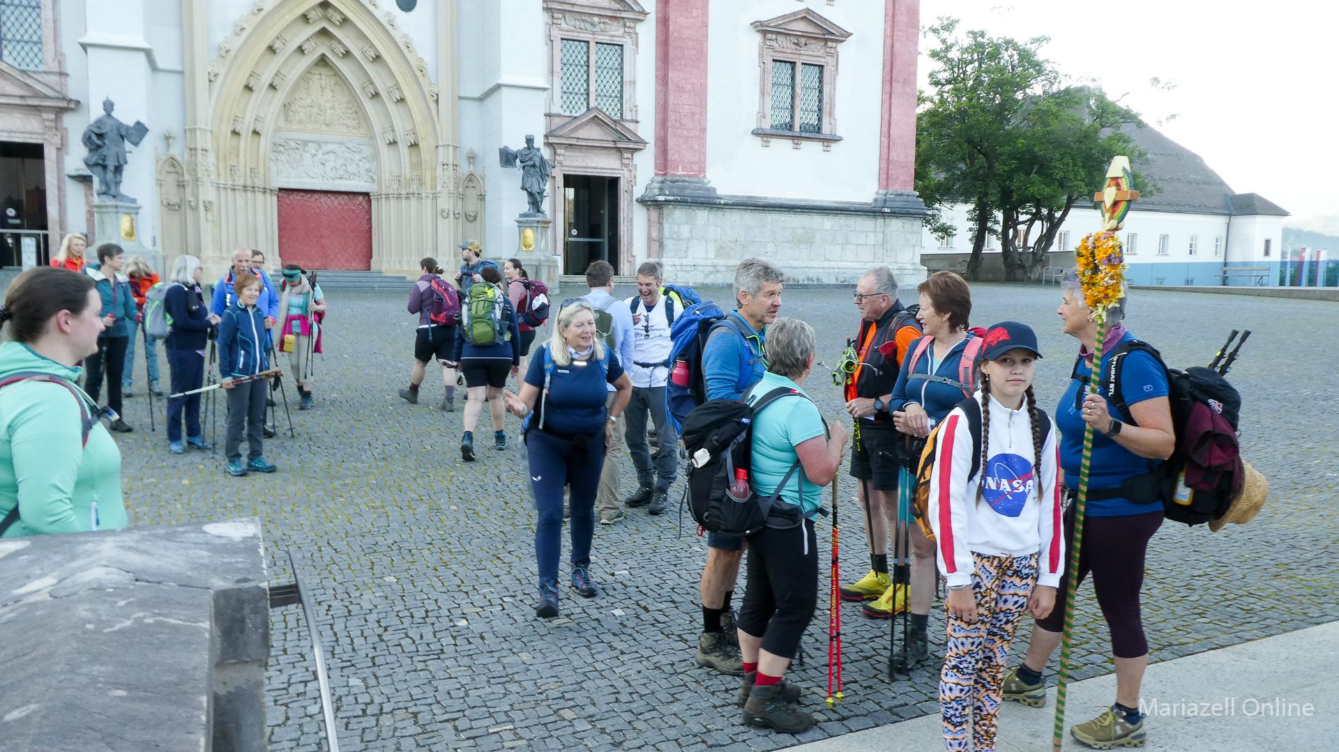 Pünktlich um 6:00 Uhr früh war es auch heuer wieder soweit: Der Mariazeller Stadtpfarrer P. Christoph Pecolt erteilte den diesmal 34 Fußwallfahrern in der Basilika Mariazell den Reisesegen.