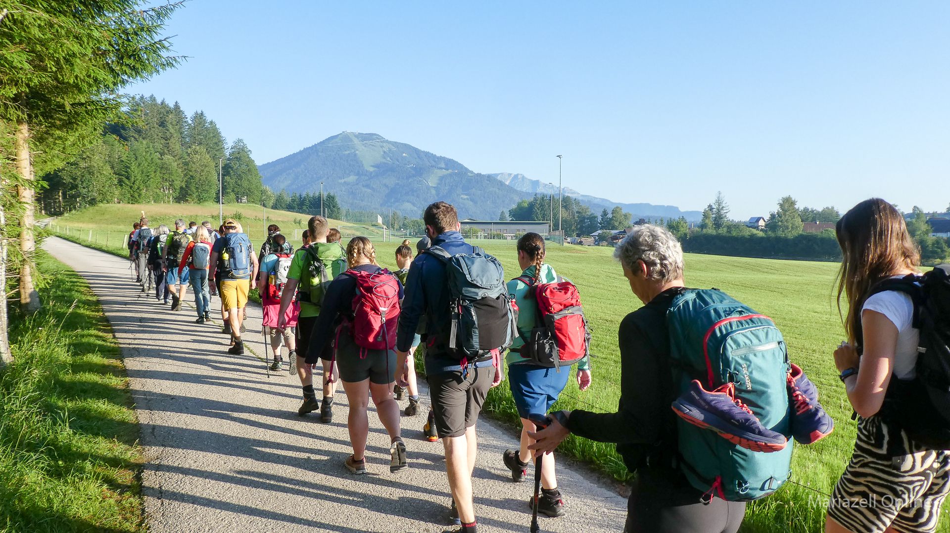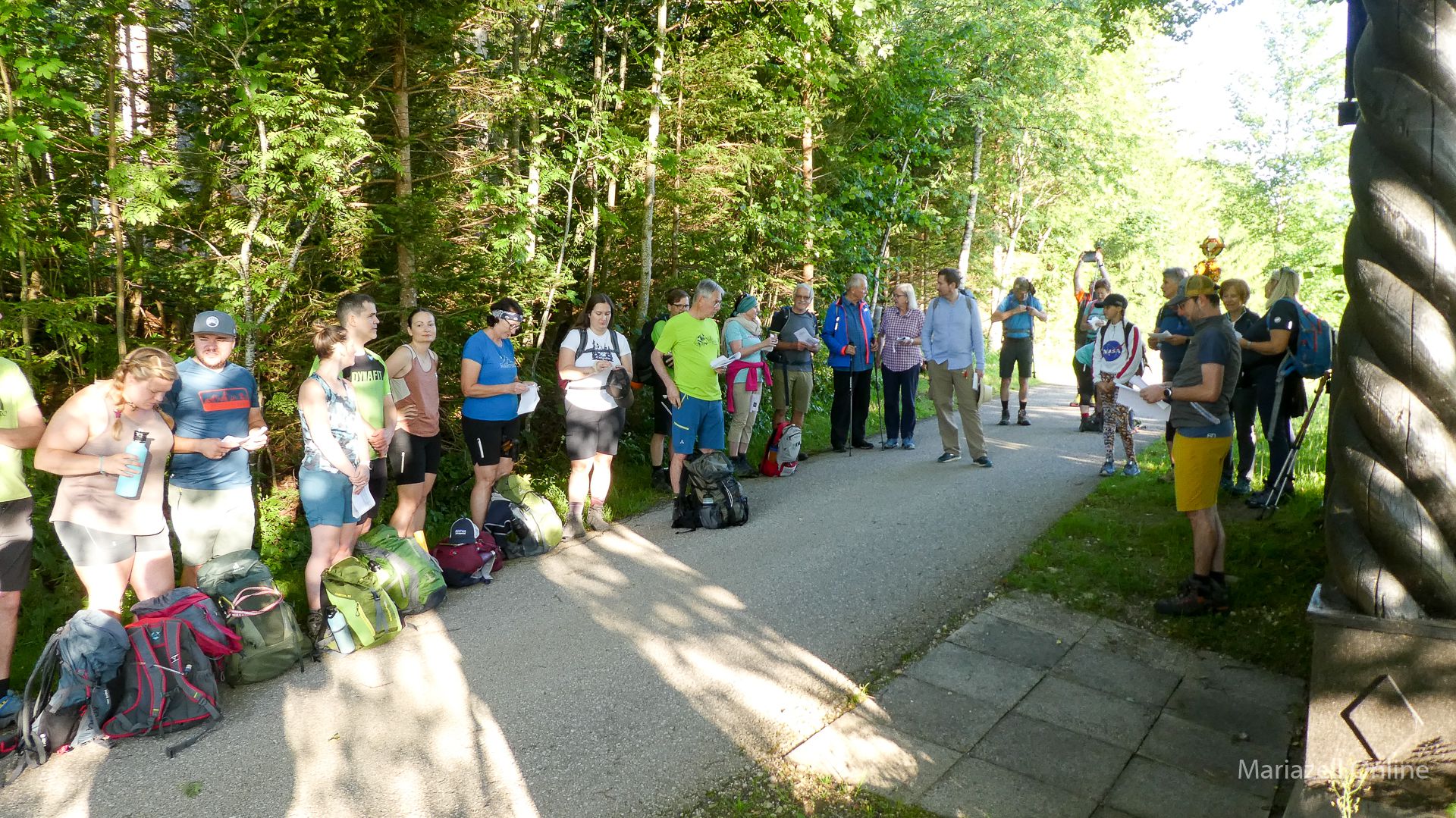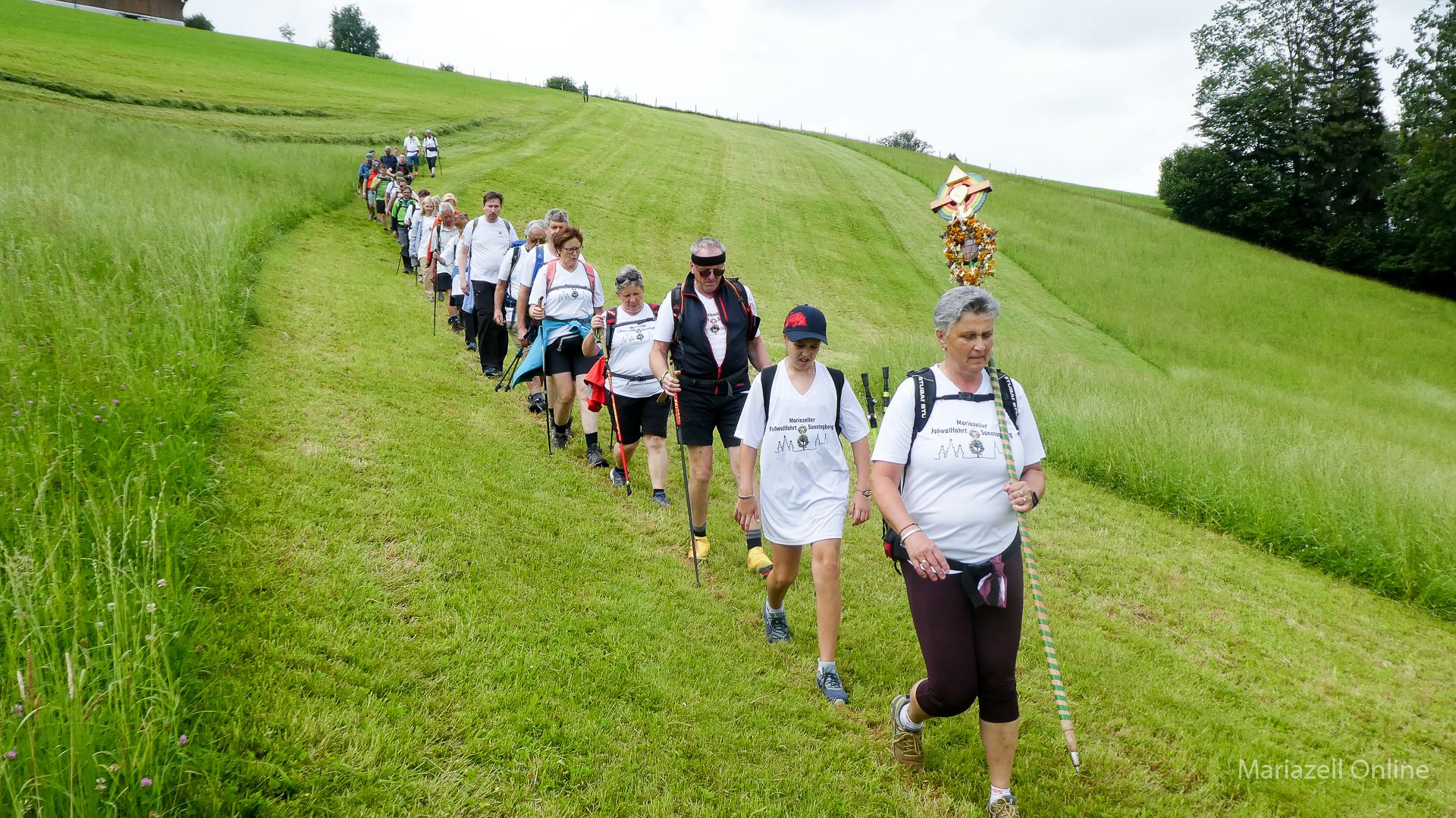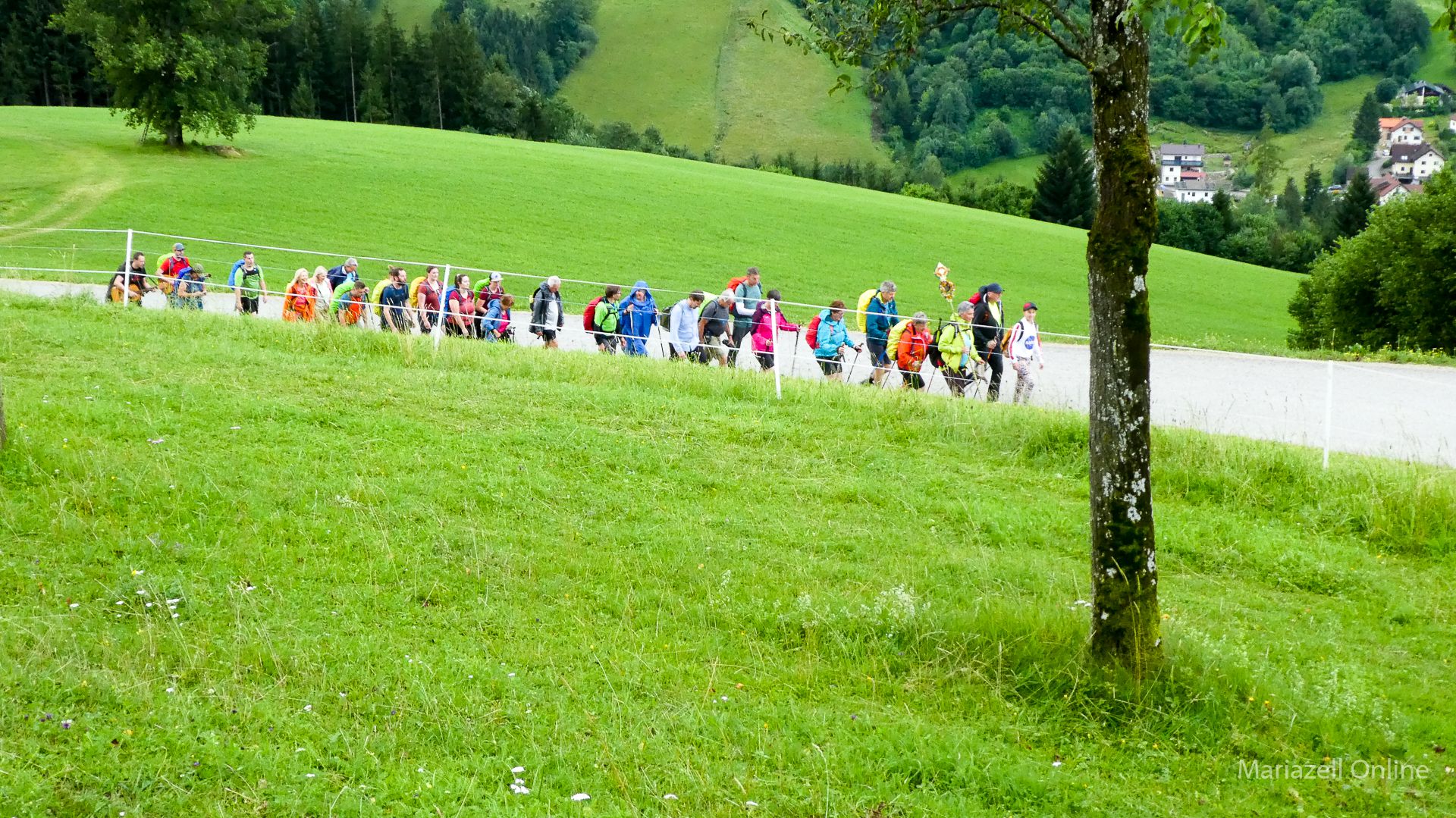 Zuvor wurde wie jedes Jahr das Gepäck im Transporter verladen, Bernhard „Börnie“ Fleischmann sorgte heuer für den Transport. Nach dem Segen machte sich die Gruppe auf den dreitägigen Fußmarsch zum Sonntagberg. Rund 80 km Wegstrecke mit mehr als 3.500 Höhenmetern Aufstieg und fast 3.700 Höhenmetern Abstieg galt es auch heuer wieder zu bewältigen.
