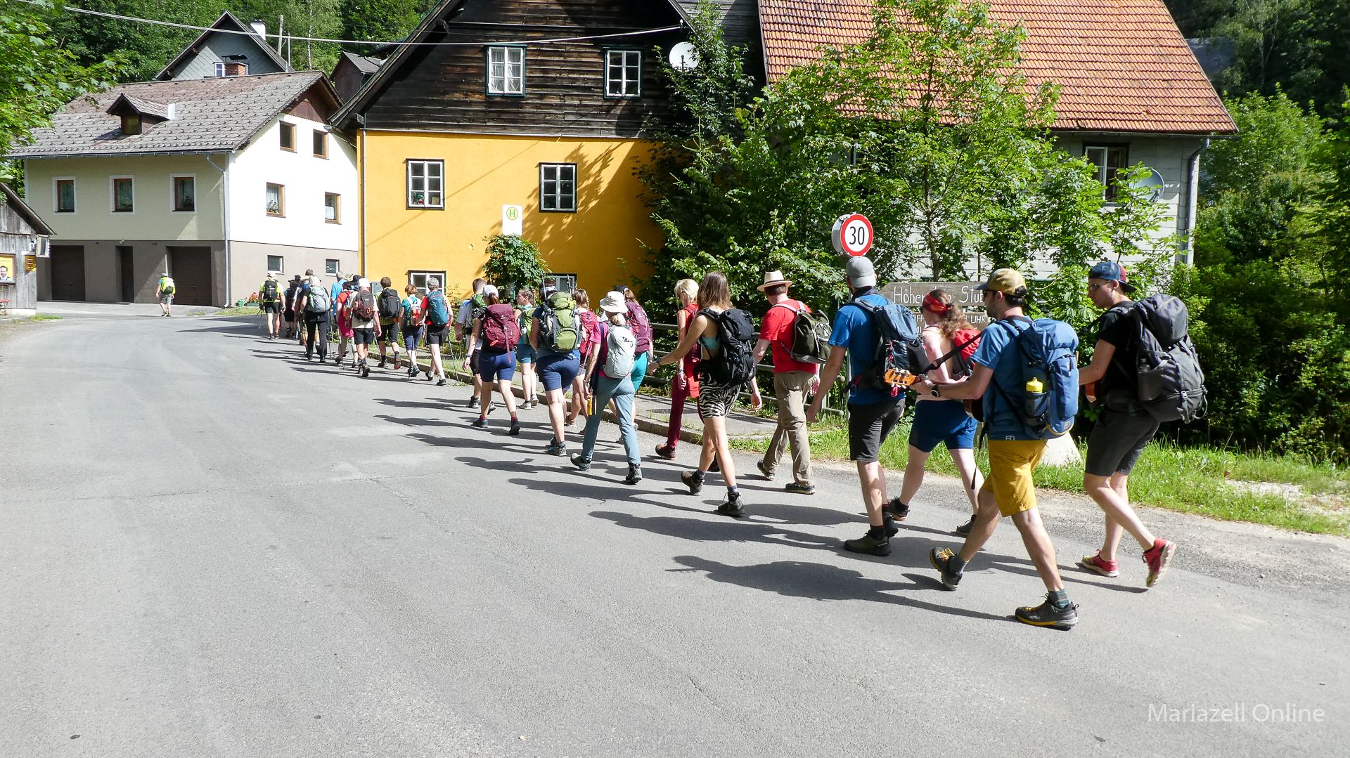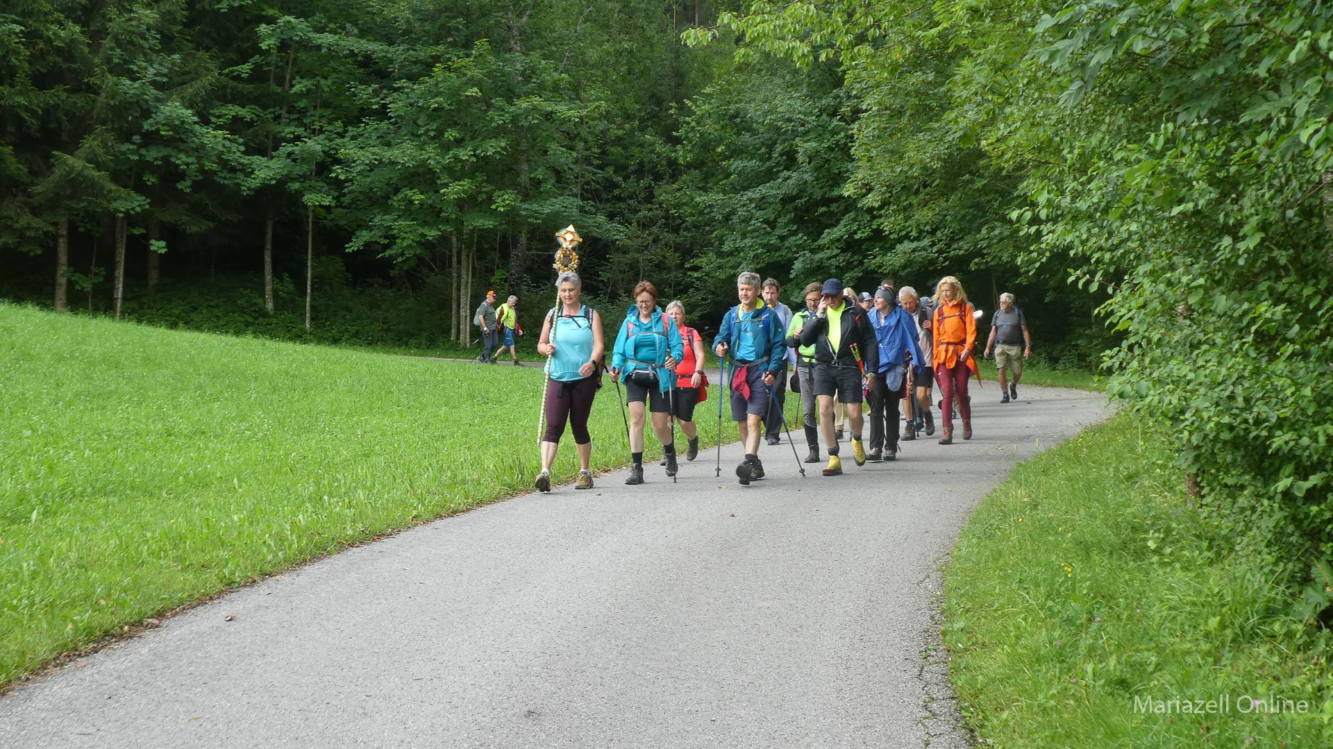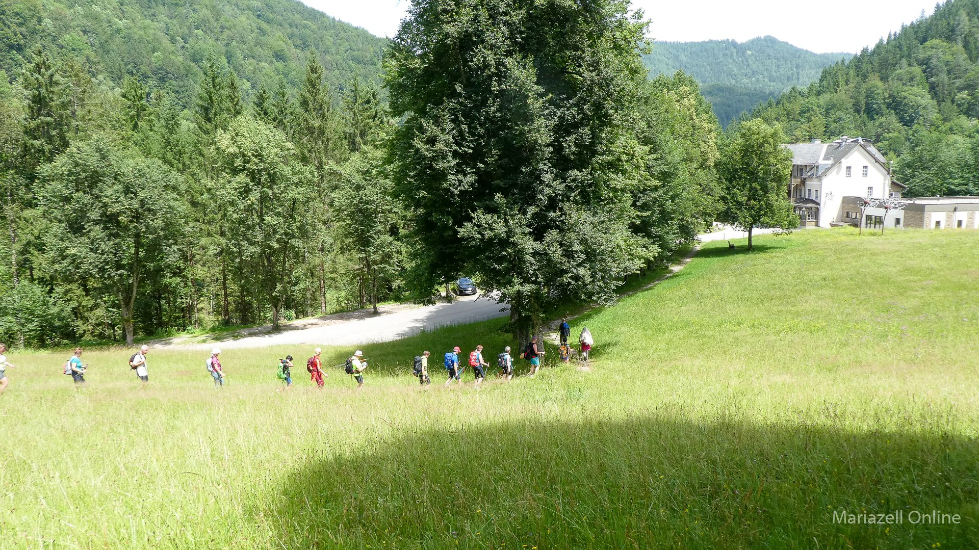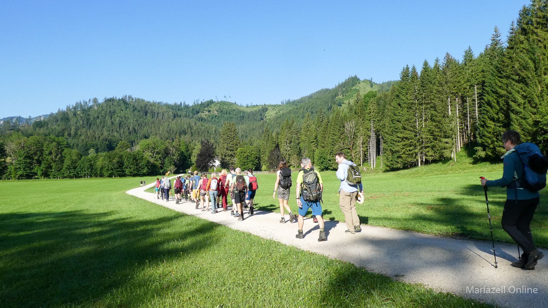 Teilweise brütende Hitze und schwüles Wetter begleitete die Wallfahrergruppe an den ersten beiden Tagen. Der erste Abschnitt führte die Pilgergruppe über den Erlaufursprung hinauf zur Feldwiesalm, hinunter nach Langau und von dort über den Durchlass nach Lunz am See.