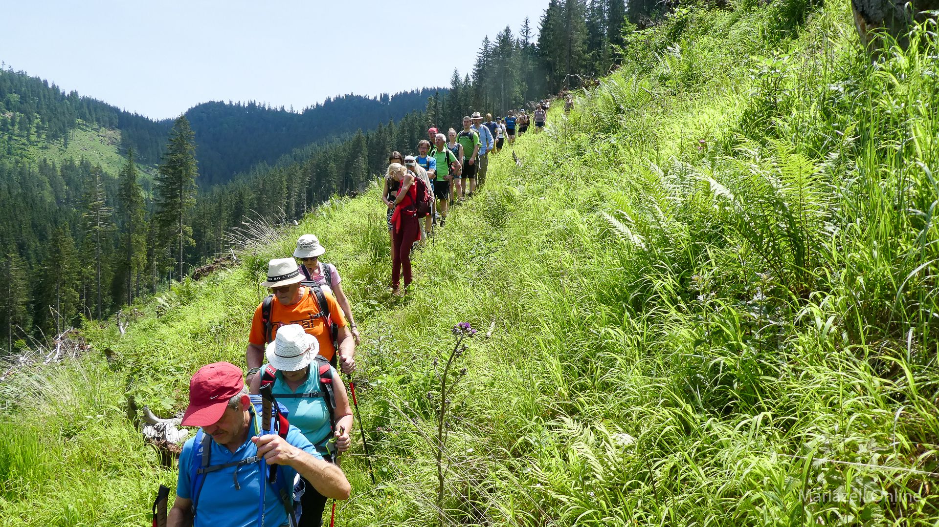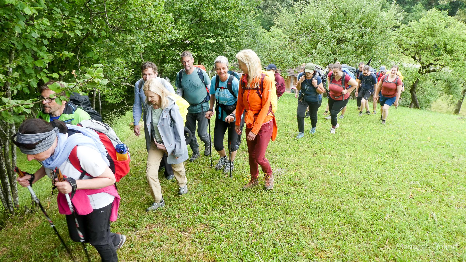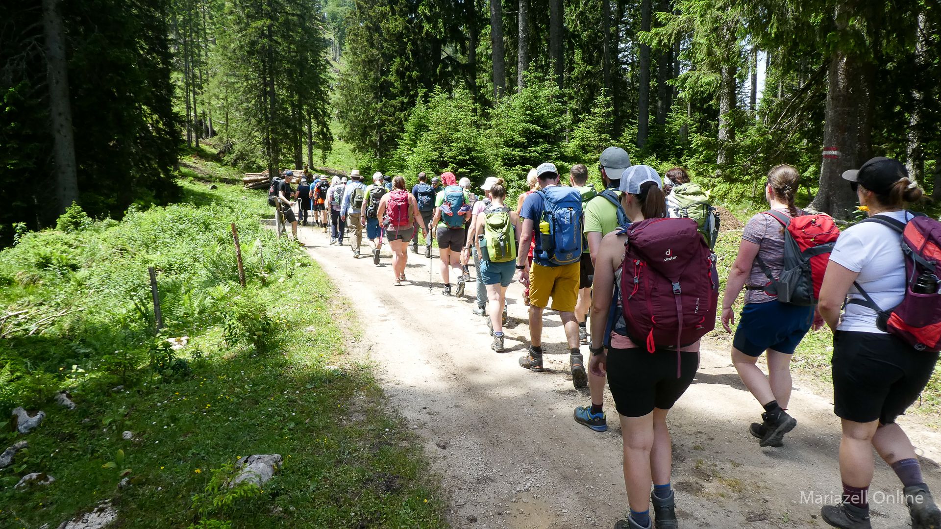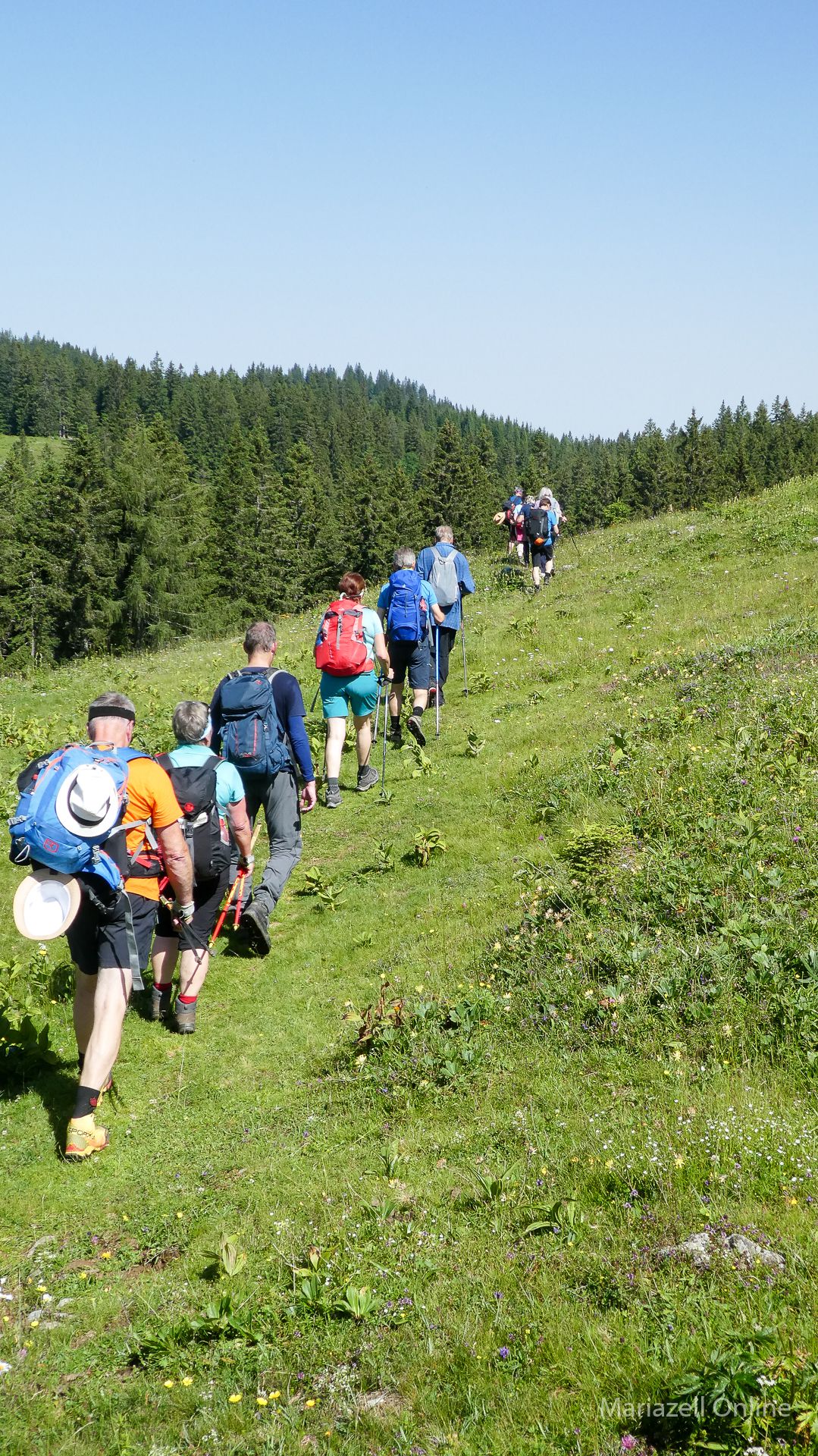 Teilweise brütende Hitze und schwüles Wetter begleitete die Wallfahrergruppe an den ersten beiden Tagen. Der erste Abschnitt führte die Pilgergruppe über den Erlaufursprung hinauf zur Feldwiesalm, hinunter nach Langau und von dort über den Durchlass nach Lunz am See.