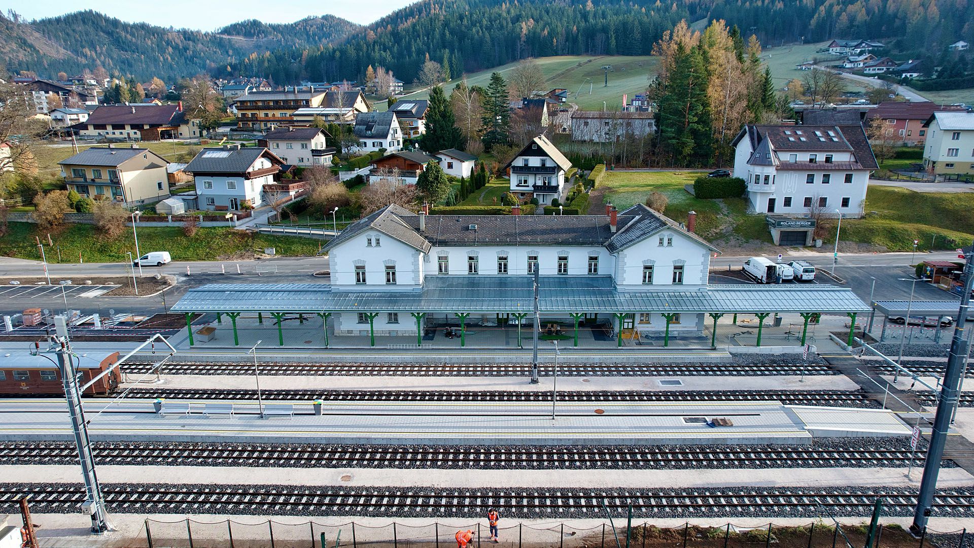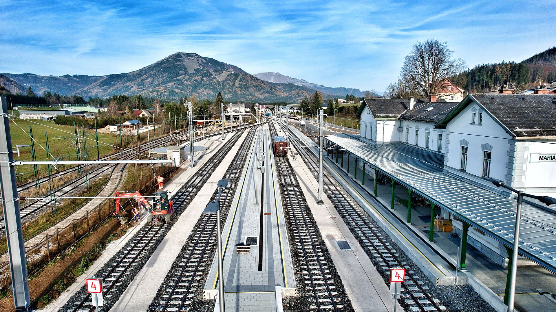 Seit 1. Mai 2024 finden Umbauarbeiten am Bahnhof Mariazell statt (wir berichteten). Vielen Dank an Marcel Gramm für das aktuellste Fotoupdate vom 6. November 2024: