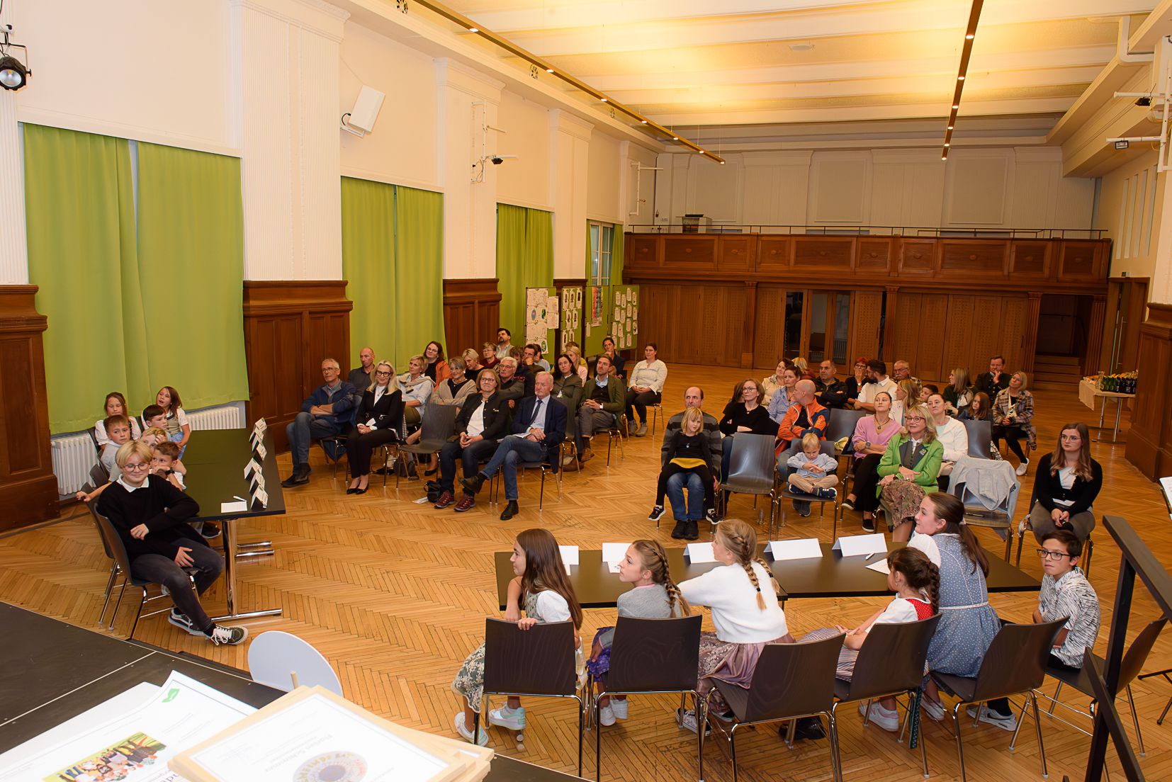 Bürgermeister Walter Schweighofer konnte bei der Angelobungsfeier Mag. Sandra Höbel und Marlene Büchler BA MA von der Landentwicklung Steiermark begrüßen, ebenso waren auch viele Eltern, Großeltern und weitere Angehörige der frischgebackenen Kindergemeinderätinnen und Kindergemeinderäte sowie natürlich auch erwachsene Gemeinderäte der Stadtgemeinde unter den anwesenden Gästen. Musikalisch umrahmt wurde der Abend natürlich ebenso von Kindern: Das Bläserduo Aryan und Liam Dixit sorgte mit Fanfaren und festlichen Musikstücken für die feierliche Gestaltung.