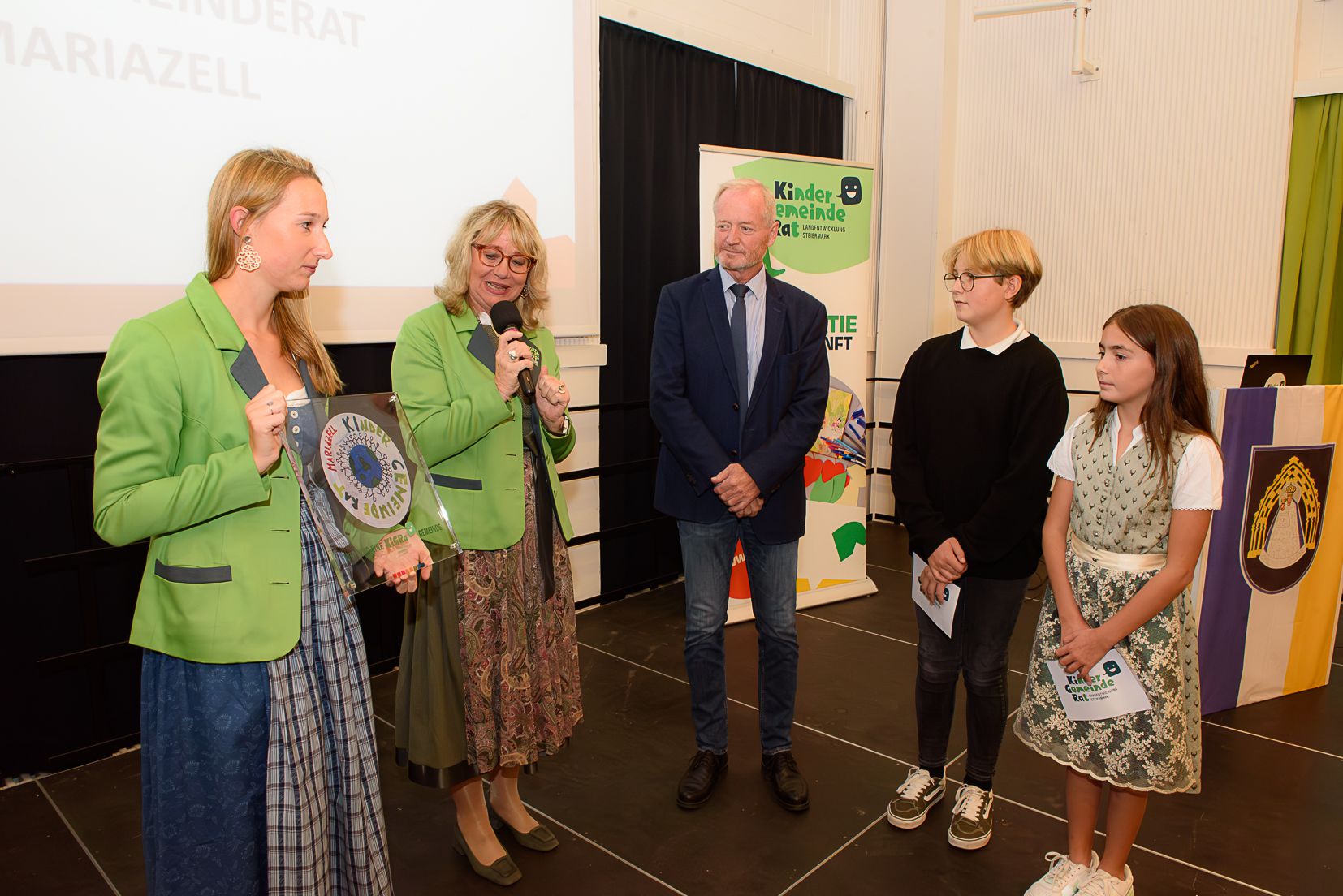 Im Anschluss wurde noch die Gründungsurkunde unterzeichnet und danach überreichten die Vertreterinnen der Landentwicklung Steiermark eine Plexiglastafel mit dem Logo des Mariazeller Kindergemeinderats. Diese Tafel soll nun an gut sichtbarer Stelle – voraussichtlich beim Stadtamt – montiert werden und damit zeigen, dass es nun auch in Mariazell einen Kindergemeinderat gibt.
