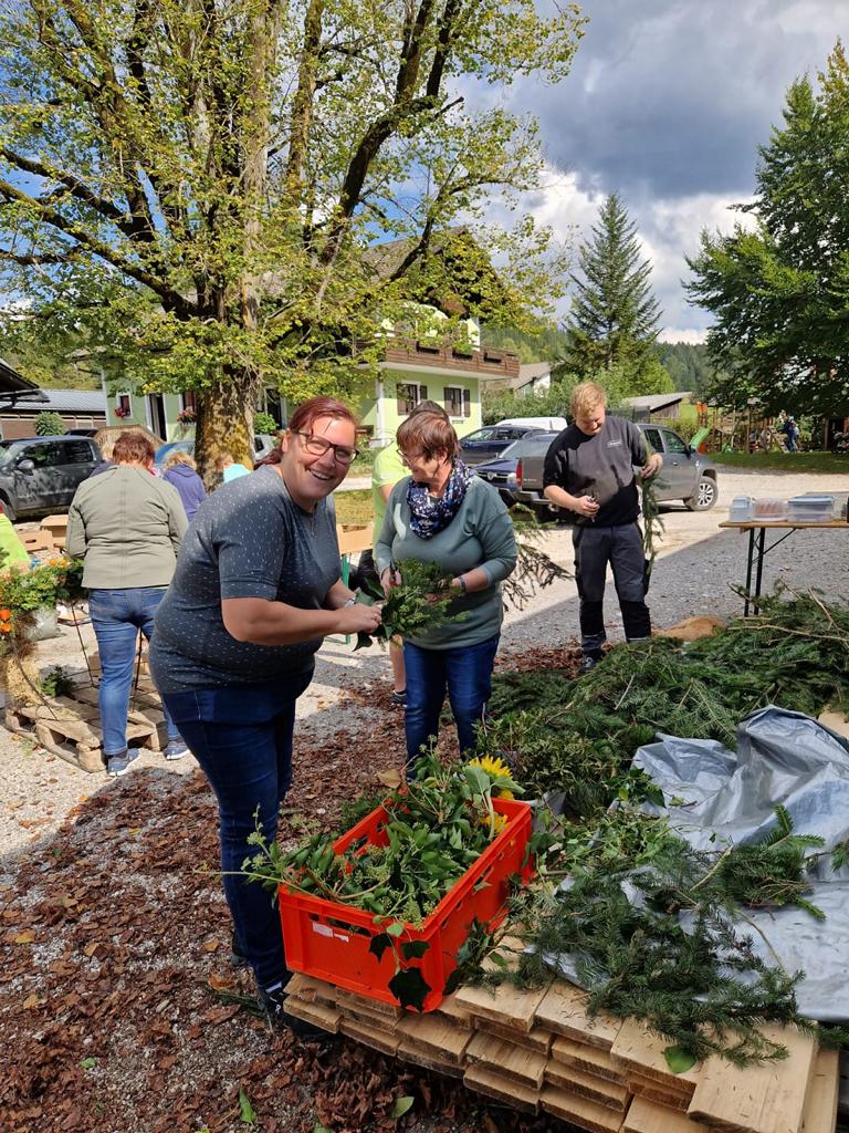 Bäuerinnen aus Mariazell und Mitterbach bereiten sich gemeinsam mit der Landjugend auf das bevorstehende Erntedankfest vor. Am Freitag, 20. September 2024 wurde beim Bauernhof Naglhofer der Familie Schweighofer in Halltal die Erntekrone gebunden.