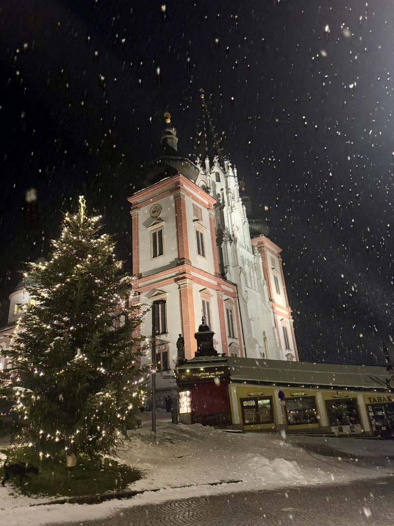 Wie auf Bestellung schneite es nach dem Konzert beim Verlassen der Basilika von Mariazell – ein Winterwunderland!