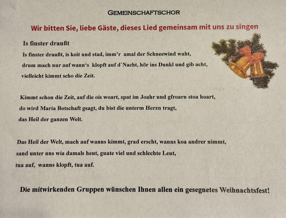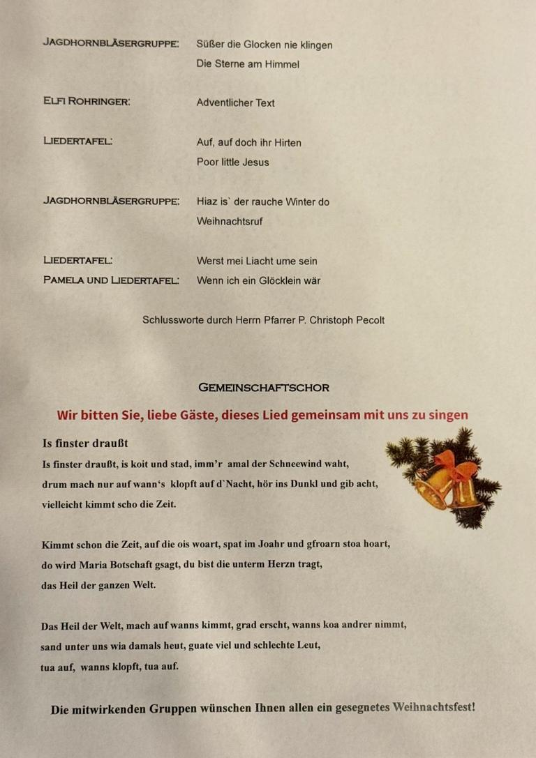 Nachfolgend die Programmabfolge des Adventkonzerts „Werst mei Liacht ume sein“: