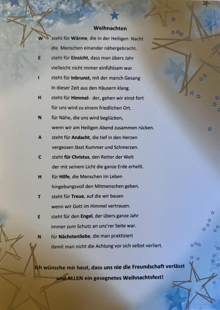 Die mitwirkenden Gruppen wünschen ein gesegnetes Weihnachtsfest!