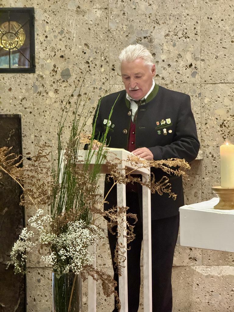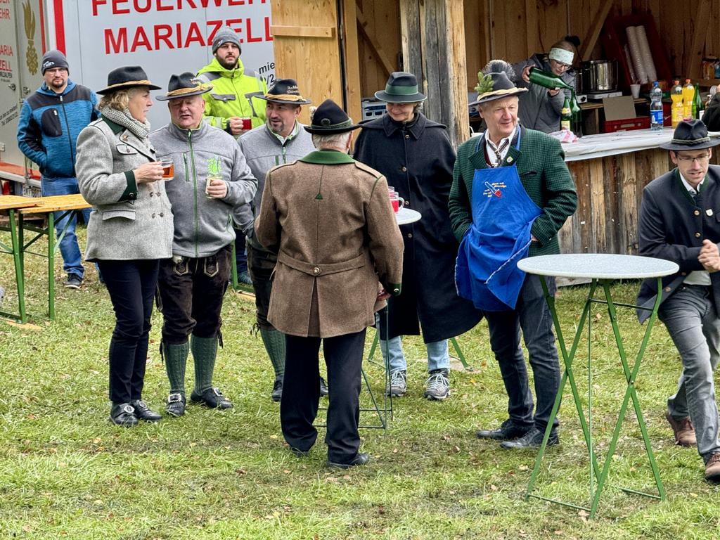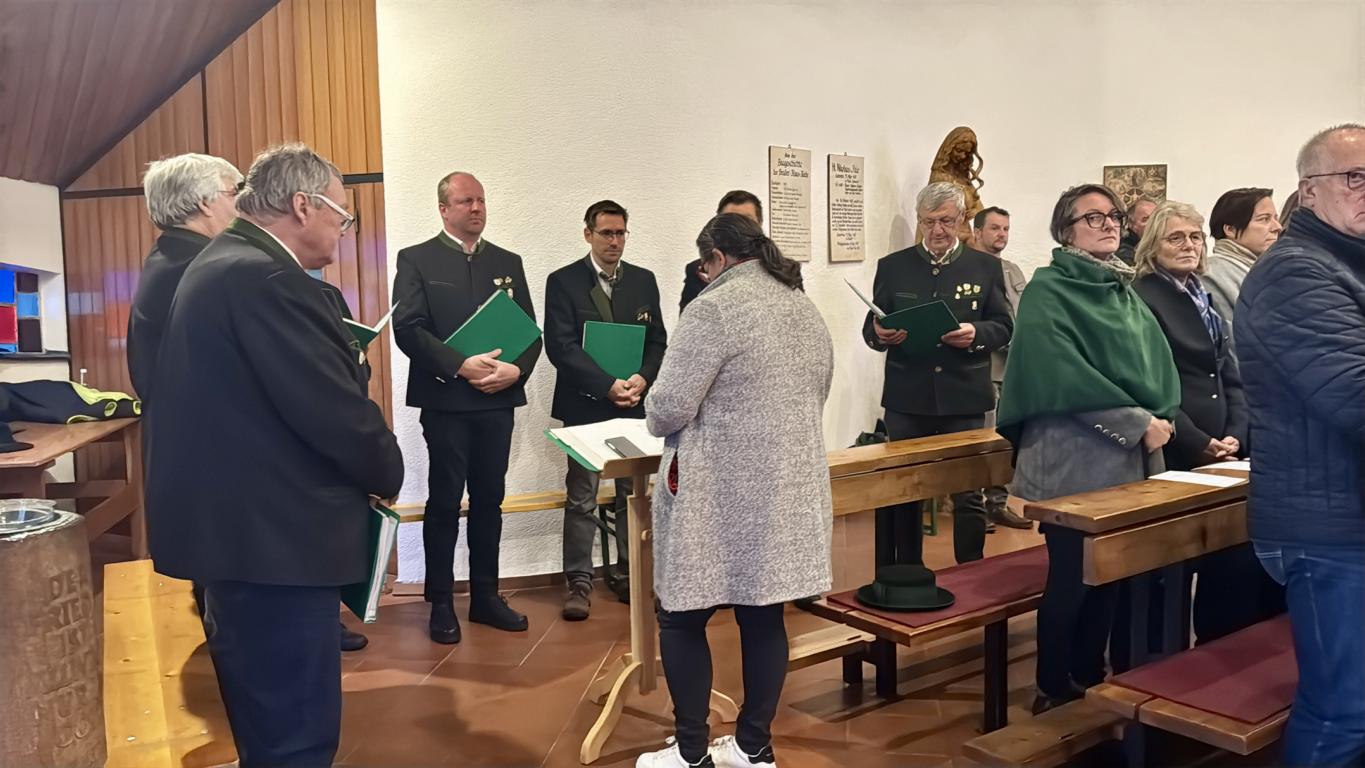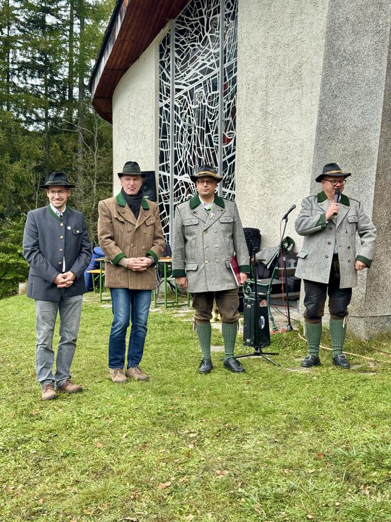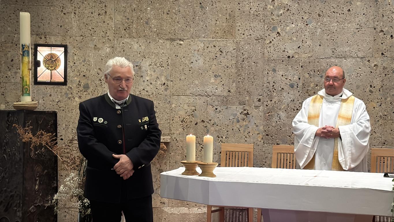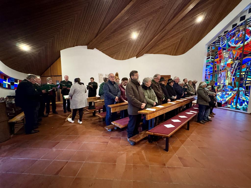 Der Festgottesdienst in der Bruder Klaus Kirche wurde vom Mariazeller Stadtpfarrer Pater Mag. Christoph Pecolt, der eine ausgezeichnete Predigt hielt, zelebriert und musikalisch von der Sängerrunde Halltal und den Aschbacher Weisenbläsern. Auch der zweite Vizebürgermeister Fabian Fluch sowie GR Siegfried Schneck, für den es später noch eine Überraschung gab, sangen in der Halltaler Sängerrunde mit, Schneck las auch die zweite Lesung.
