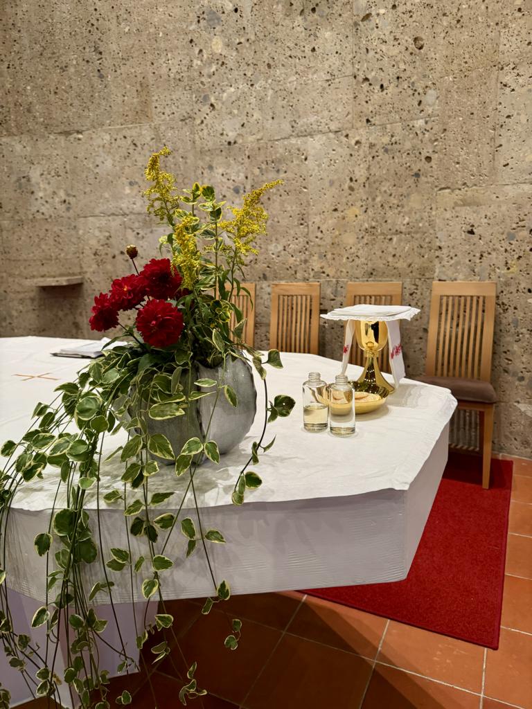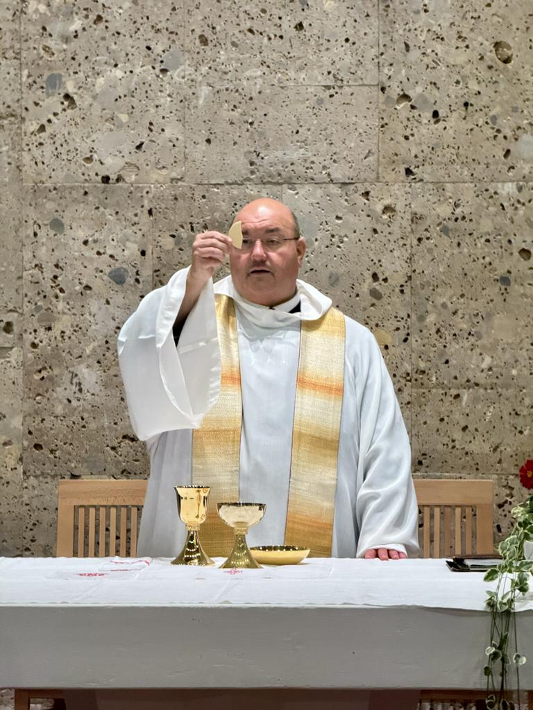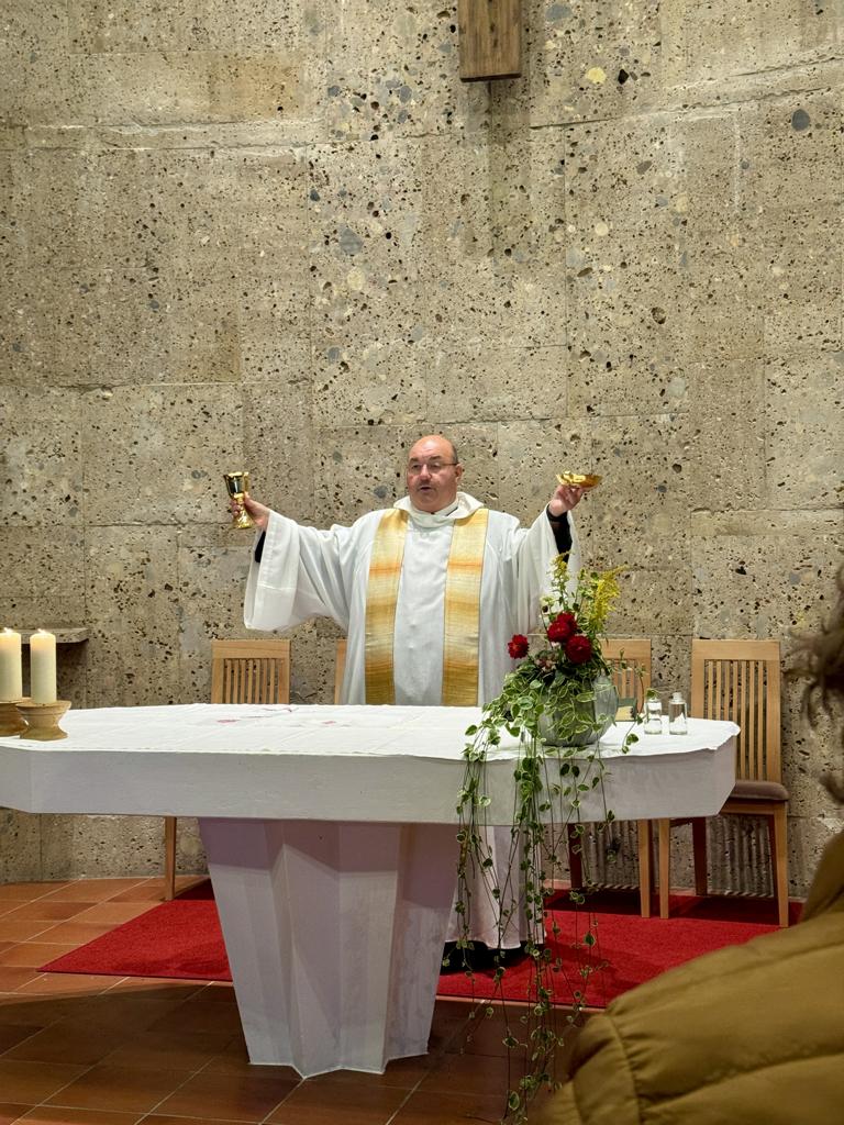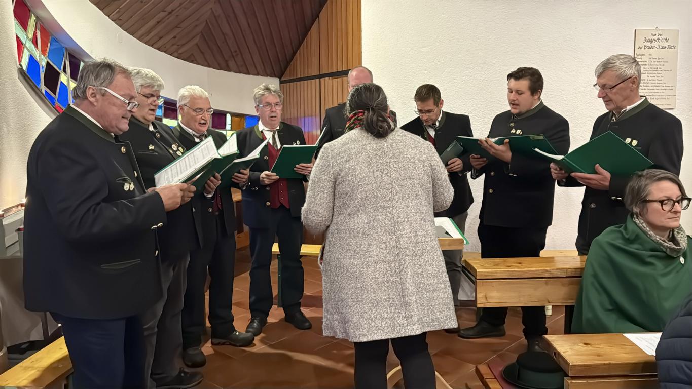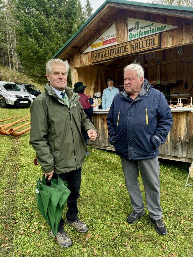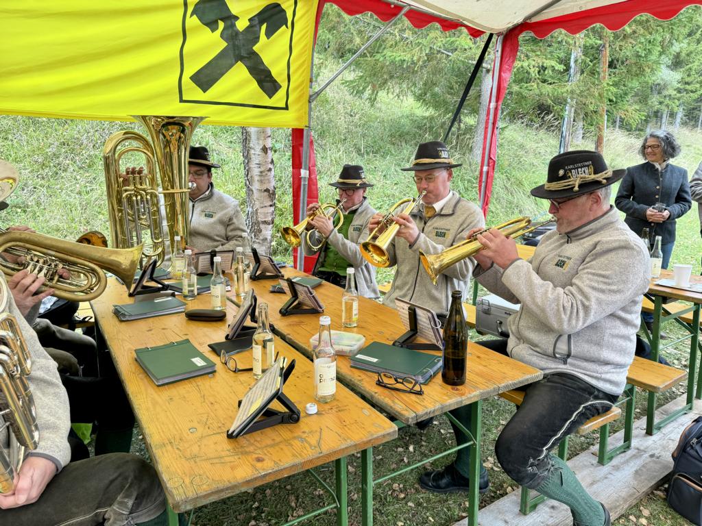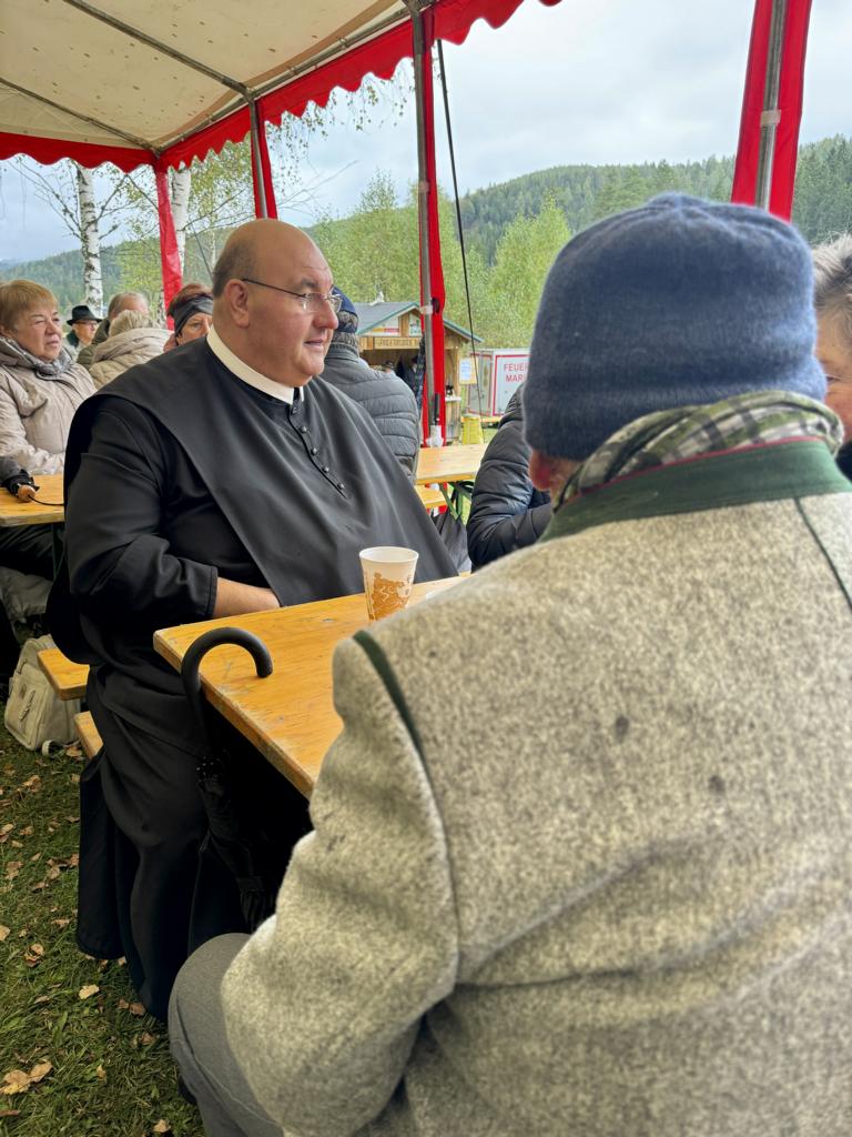 Der Festgottesdienst in der Bruder Klaus Kirche wurde vom Mariazeller Stadtpfarrer Pater Mag. Christoph Pecolt, der eine ausgezeichnete Predigt hielt, zelebriert und musikalisch von der Sängerrunde Halltal und den Aschbacher Weisenbläsern. Auch der zweite Vizebürgermeister Fabian Fluch sowie GR Siegfried Schneck, für den es später noch eine Überraschung gab, sangen in der Halltaler Sängerrunde mit, Schneck las auch die zweite Lesung.