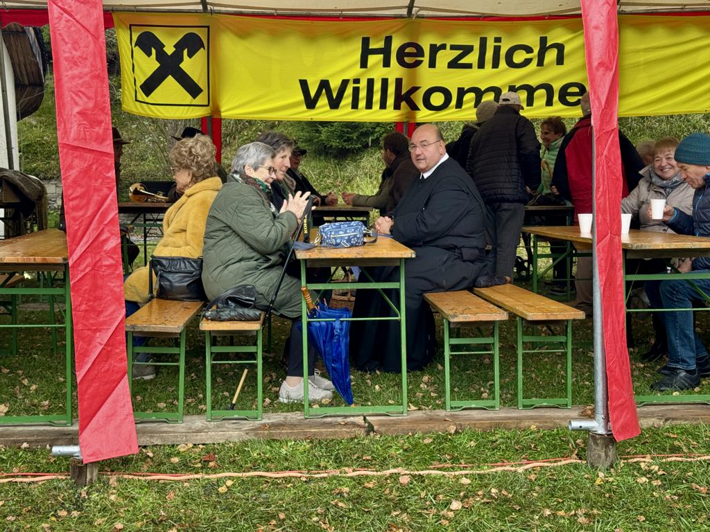 Pater Christoph hatte eine sehr freudige Überraschung für die anwesenden Gäste: er teilte mit, dass im kommenden Frühjahr das in die Jahre gekommene Schindeldach der Kirche generalsaniert werden wird. In diesem Zusammenhang sprach er der Mesnerin Fr. Christine Hölbling seinen Dank für die liebevolle Betreuung der Kirche aus.