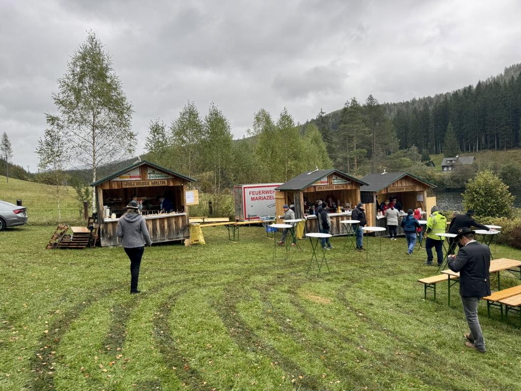 Für das leibliche Wohl haben sich die Halltaler wie jedes Jahr ins Zeug gelegt und feinste Mehlspeisen sowie ausgezeichnet schmeckende Bratwürste und Käsekrainer angeboten. An dieser Stelle seien die vielen Mehlspeis-Spenden dankend erwähnt, überdies auch ein Dank an das bewährte Einweiser-Team, welches sich um den Verkehr und die Parkordnung kümmerte, um ein Durchkommen von Einsatzfahrzeugen sicherzustellen sowie auch ein Dank allen freiwilligen Helferinnen und Helfern die im Einsatz waren, sei es bei der Ausschank, bei Kuchen und Kaffee, in der Grillhütte oder beim Vorbereiten und Wegräumen.