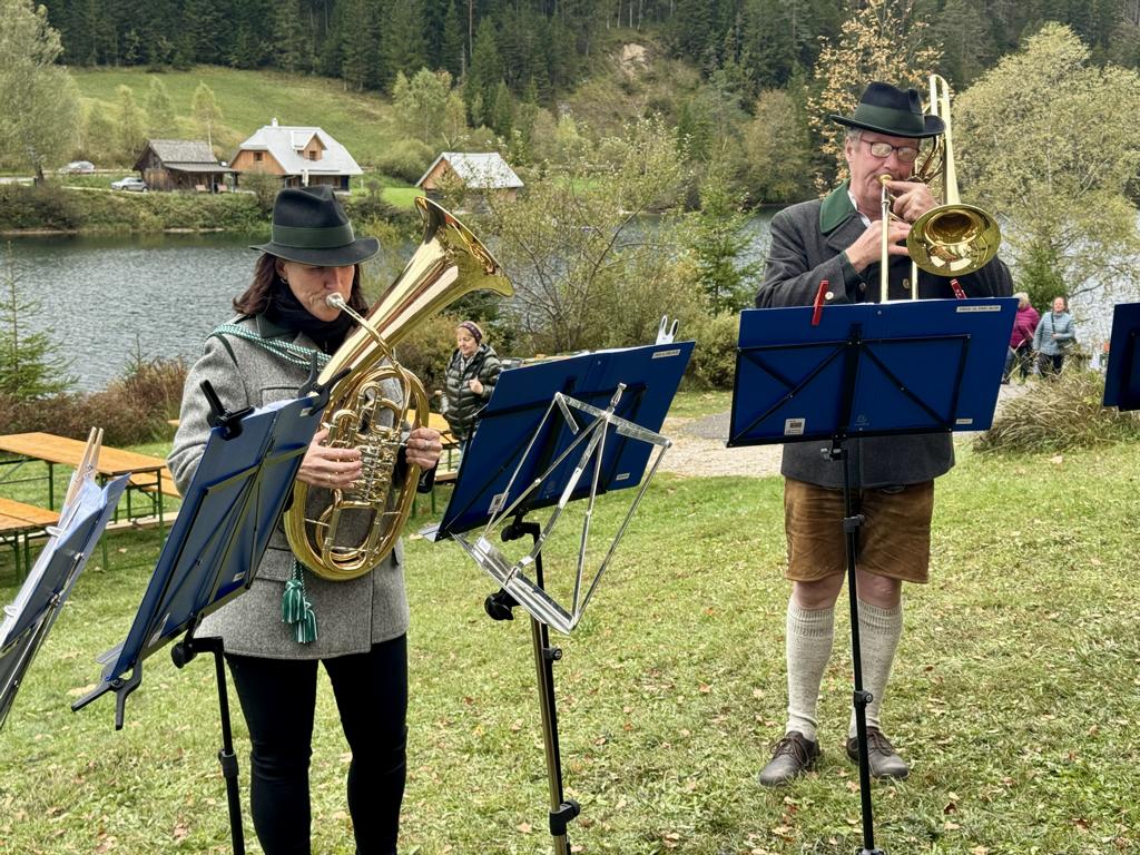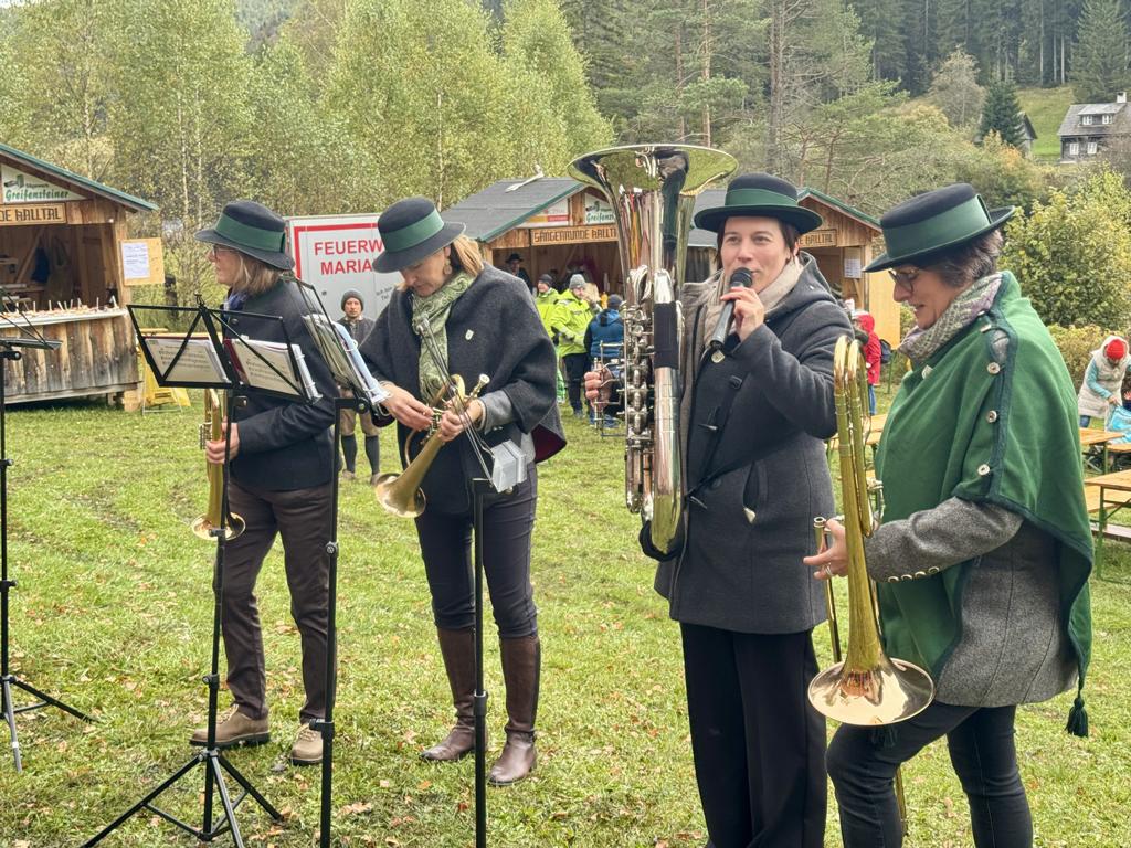 Am Nachmittag fand noch in gewohnter Weise ein Gesamtspiel der anwesenden TeilnehmerInnen statt, welches den Zusammenhalt und die Verbundenheit der MusikerInnen untereinander besonders zum Ausdruck brachte. Unter den Ehrengästen waren der Mariazeller Bürgermeister Helmut Schweiger mit Gattin, der zweite Vizebürgermeister Fabian Fluch und der Altbürgermeister von Halltal Herbert Fuchs.