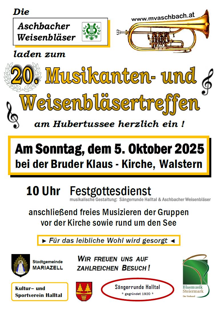 Am Sonntag, 5. Oktober 2025 jährte sich das inzwischen zur Tradition gewordene Weisenbläsertreffen in der Walstern bereits zum 20. Mal. Ein leicht regnerischer und windiger Herbsttag bot den trotzdem zahlreichen erschienen Gästen und Musikanten einen akustischen Hochgenuss. In der Bruder Klaus Kirche waren alle Plätze beim Festgottesdienst zum Patrozinium des Nikolaus von der Flüe besetzt.