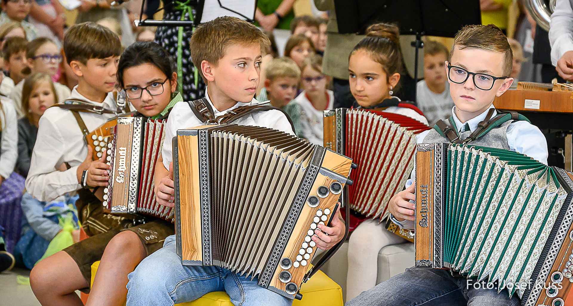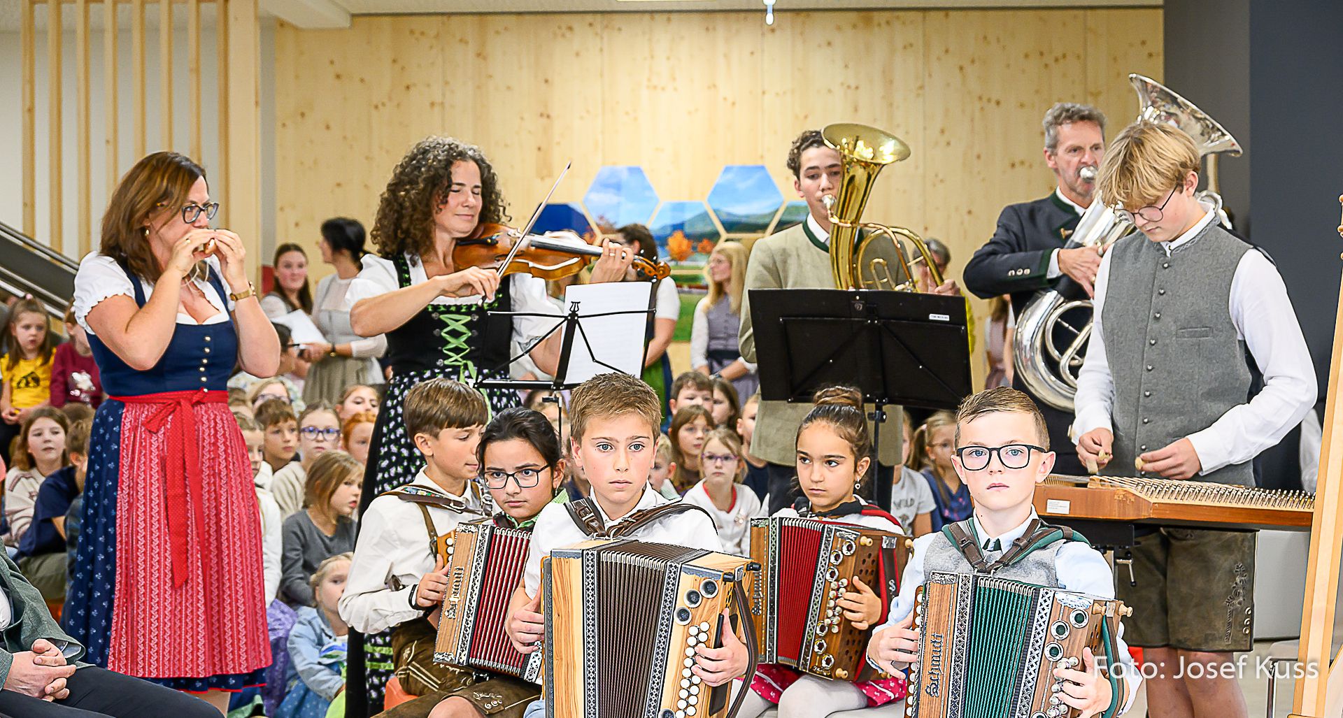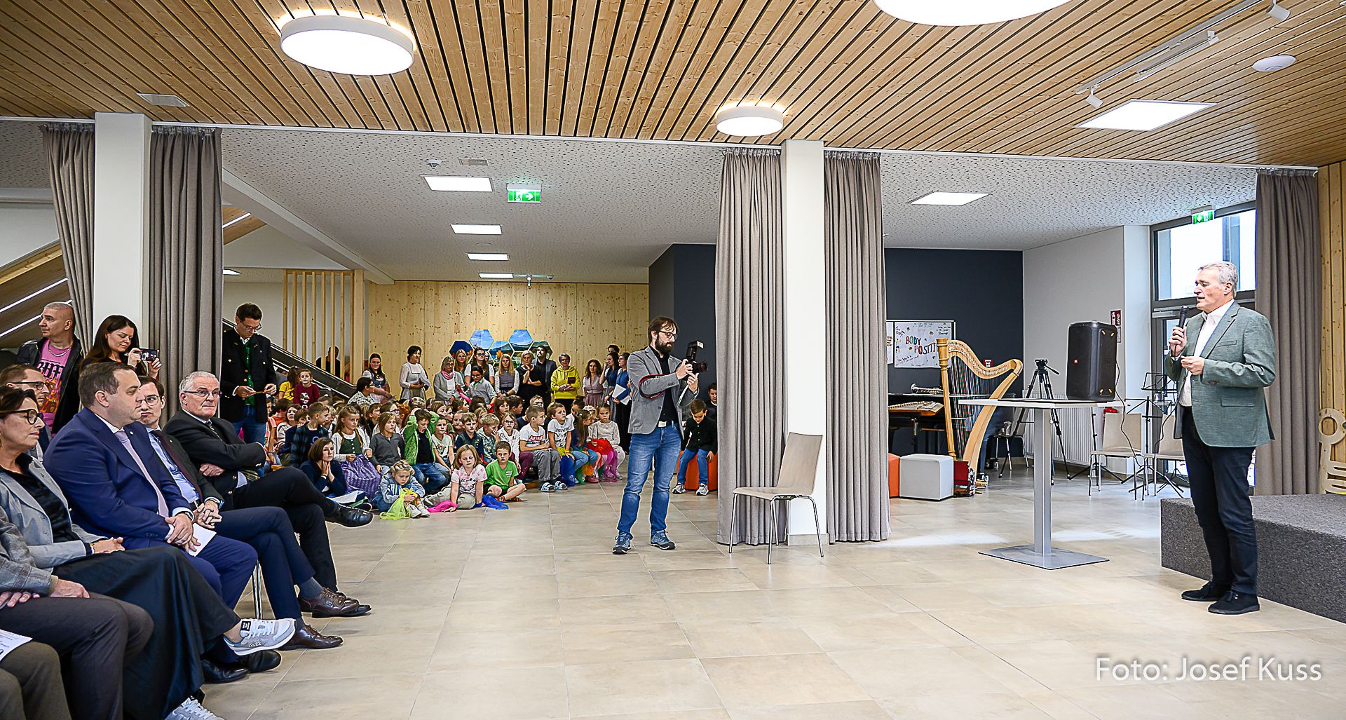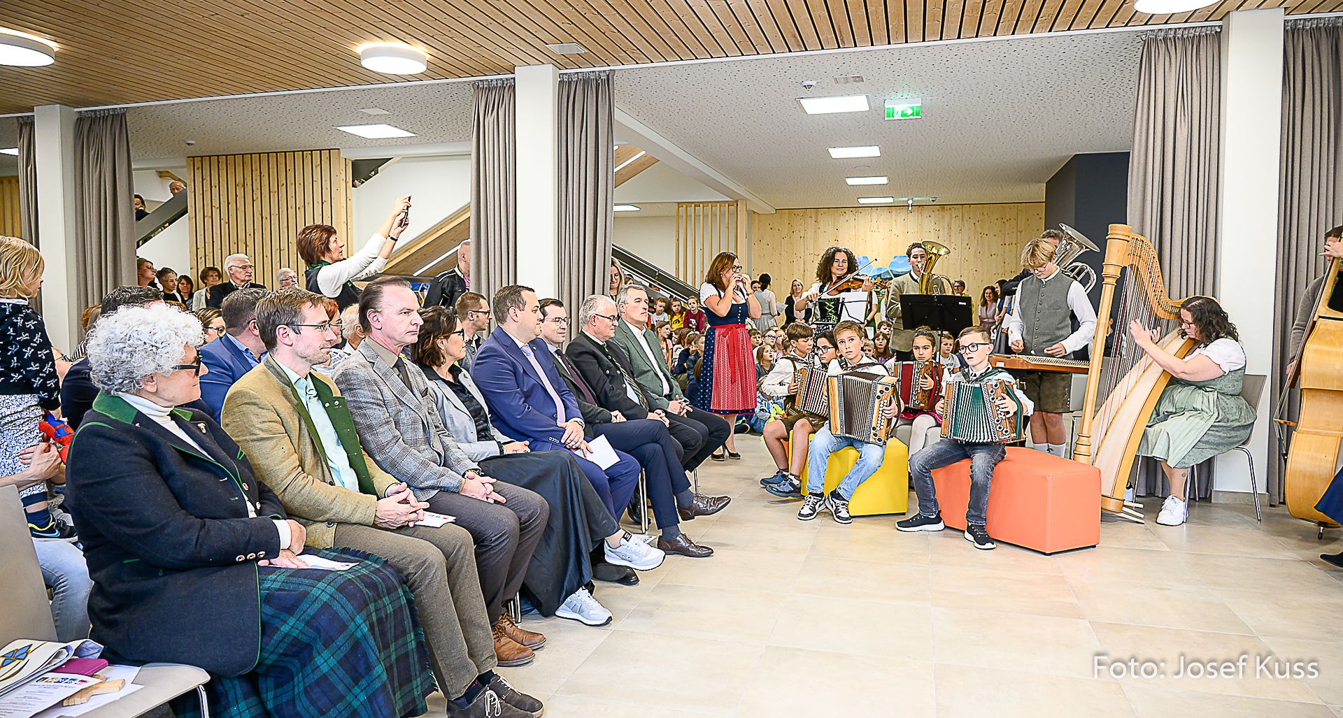Die Segnung des neuen Gebäudes übernahm Pater Sebastian, die musikalische Umrahmung des Festakts erfolgte durch Schülerinnen und Schüler der Musikschule.