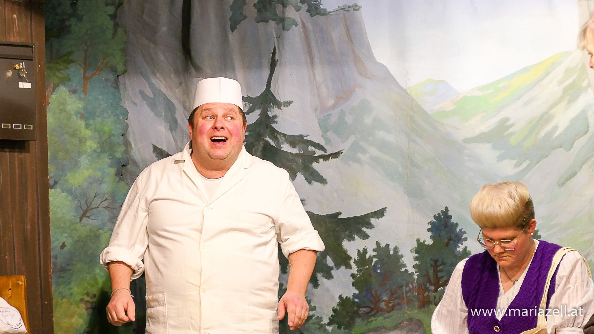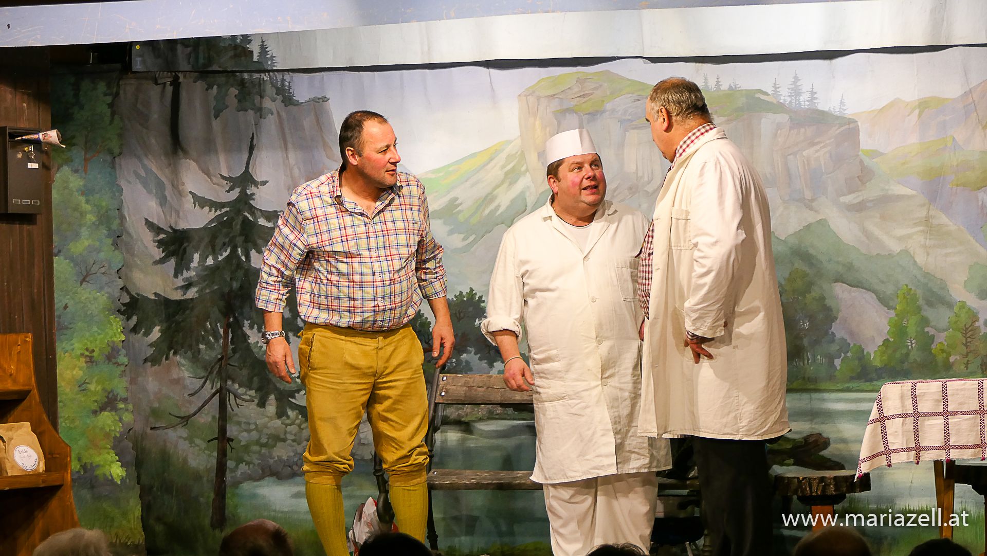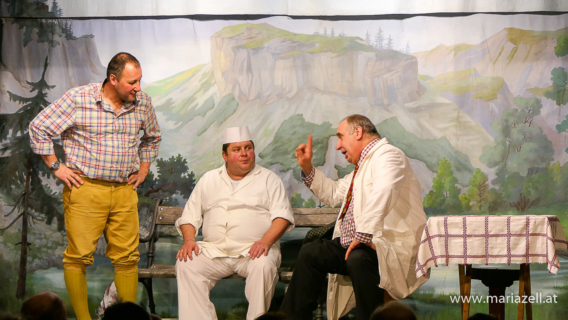 Unter der bewährten Regie von Christine Illmaier, die gemeinsam mit Elfi Ploderer auch als Souffleuse tätig war, sorgten die bewährten Schauspieler/innen Wolfgang Casari, Bernhard Goldgruber, Monika Goldgruber, Bernhard Glitzner, Michaela Greifensteiner, Bianca Janker, Verena Ploderer, Bernhard Schober sowie Claudia Ulrich-Schober für einen permanenten Angriff auf die Lachmuskeln des zahlreich erschienenen Publikums.