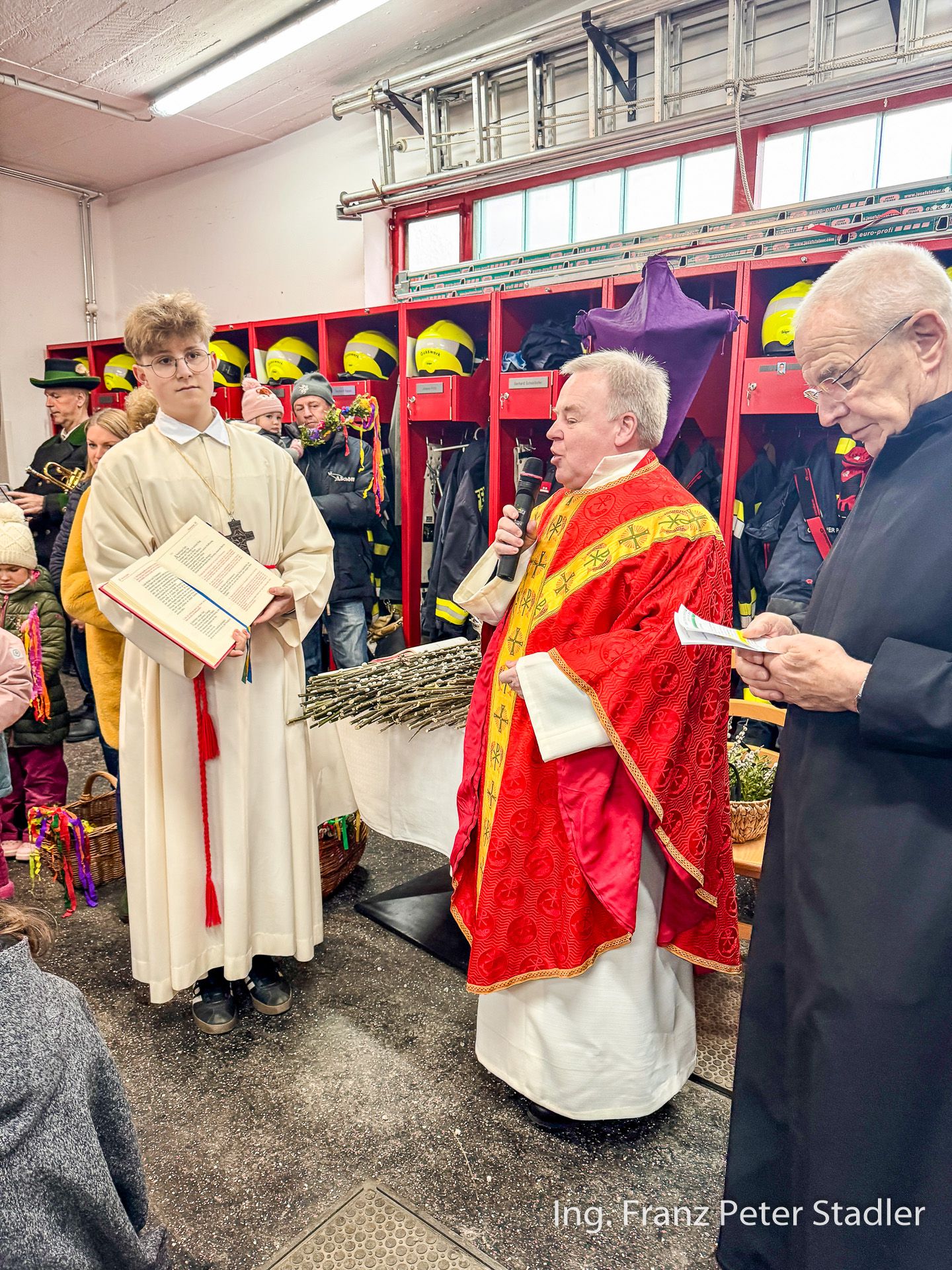 Bekannterweise soll man Feste feiern, wie sie fallen – auch wenn das Wetter nicht besonders ist. Schneefall und eisiger Wind dominierten den diesjährigen Palmsonntag, doch Dank der Unterstützung der Freiwilligen Feuerwehr von Gußwerk konnte die Segnung der Palmzweige und der zahlreichen Palmbuschen heuer im Rüsthaus der Feuerwehr abgehalten werden.