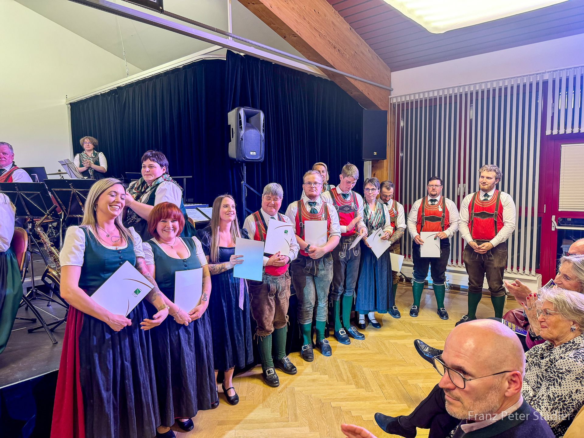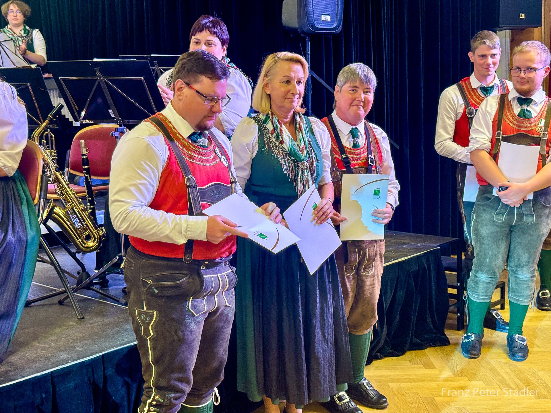 Nach der Pause, im zweiten Teil des Konzerts fanden dann wie jedes Jahr die Ehrungen für die Leistungsabzeichen sowie für die langjährigen Mitgliedschaften beim Blasmusikverband statt. Diese wurden von Sabine Maßer und Helmut Schweiger feierlich überreicht.