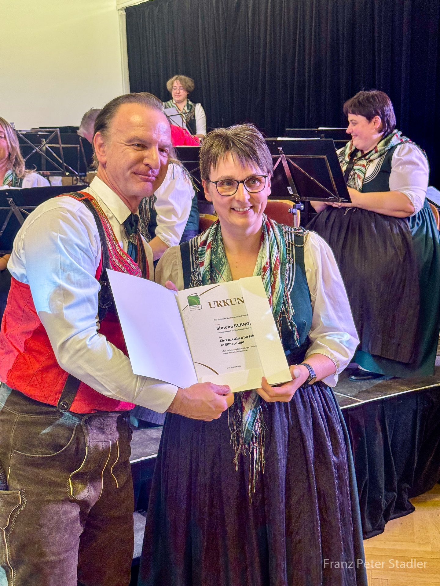 Das Ehrenzeichen in Silber Gold für 30 Jahre Mitgliedschaft im steirischen Blasmusikverband erhielt: