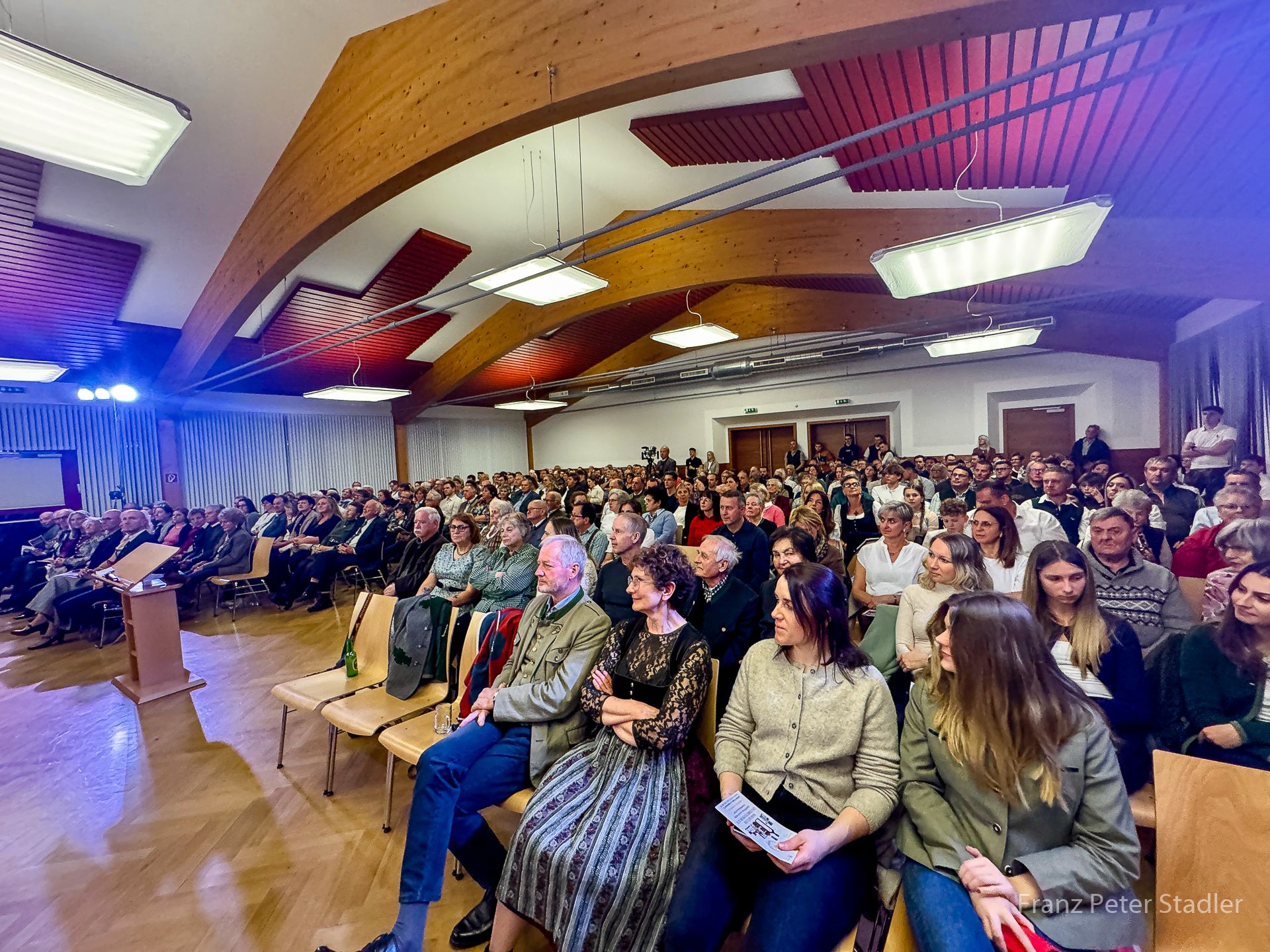 Bürgermeister Helmut Schweiger hielt als feierlichen Abschluss der Ehrungen eine kurze Rede in der er im Zentrum von dieser die Frage stellte: Was hat den Konzertabend heute so besonders gemacht? Die Harmonie, die verbindet, die MusikerInnen am Podium und die ZuhörerInnen hier im Saal. Genießen sie den Abend.