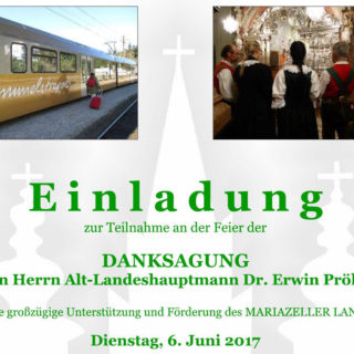 Nachdem der NÖ Alt-Landeshauptmann Dr. Erwin Pröll nicht nur für „sein“ Land viel geleistet hat, sondern damit auch das direkt angrenzende Mariazeller Land tatkräftig förderte, fand am Dienstag, 6. Juni 2017 eine Danksagungsfeier für...