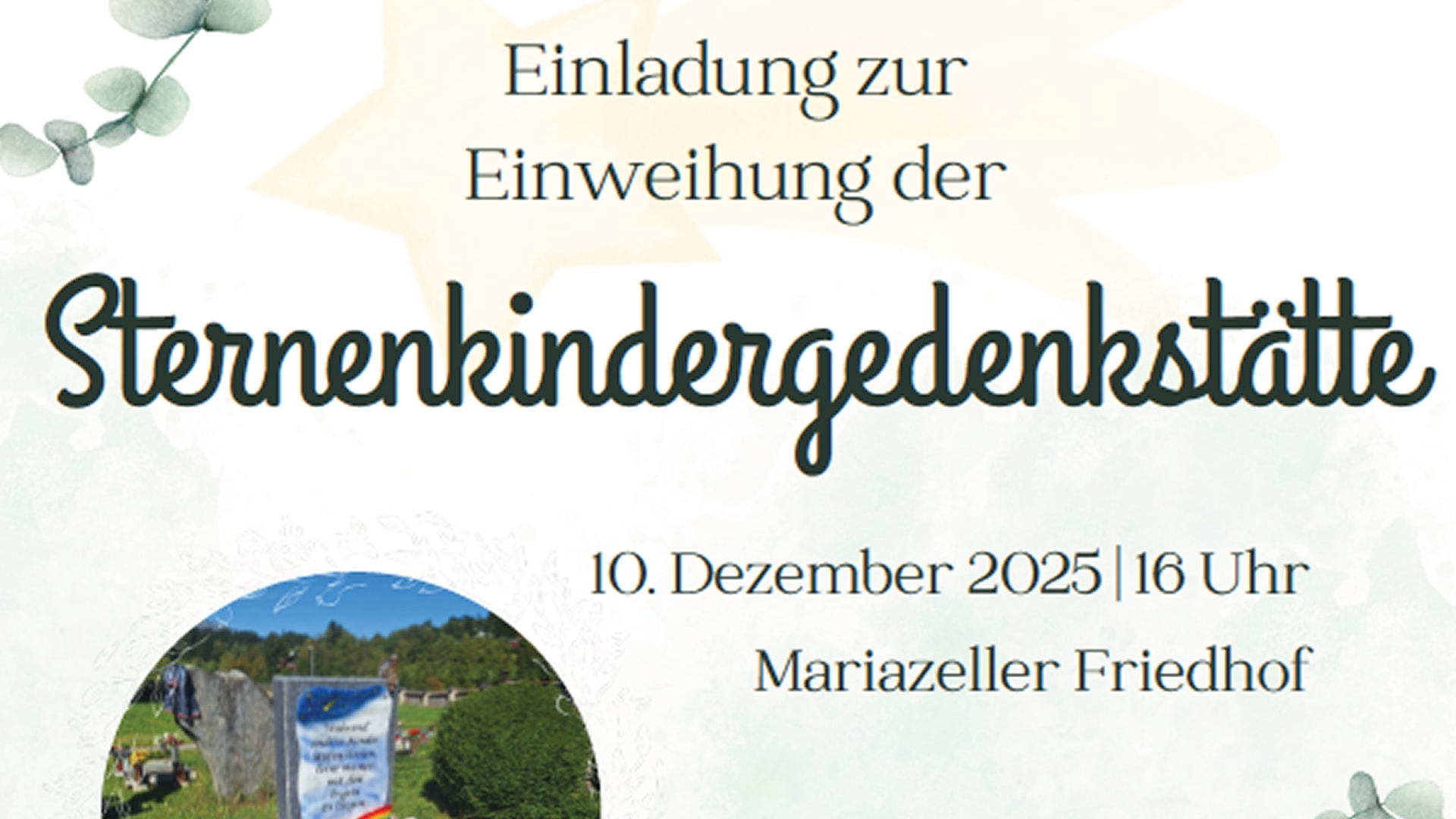 Stefanie Resch und Angela Mauerbauer laden Sie herzlich am Mittwoch, 10. Dezember 2025 um 16:00 Uhr zur Einweihung der Sternenkindergedenkstätte am Friedhof in Mariazell ein. Sie freuen sich auf Ihren Besuch!