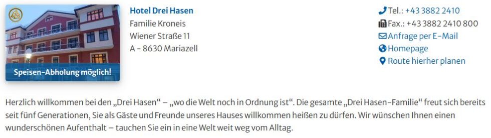 Und nützen Sie die Gelegenheit, aktuelle Angebote bei Ihrem Bildeintrag hinzufügen zu lassen, dies ist für Mitgliedsbetriebe von Mariazell-Online bis zu 4x pro Jahr kostenlos. Wir danken für Ihre Mithilfe und freuen uns auf Ihre Rückmeldung!