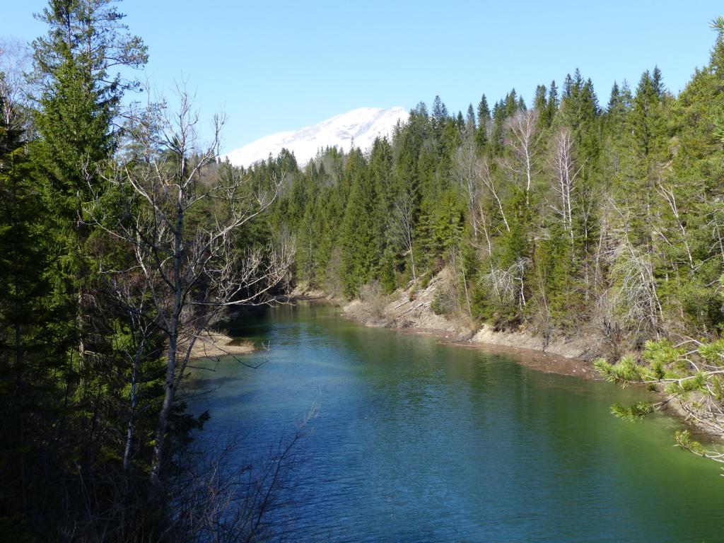 Dazu folgen Sie ca. 15 Minuten lang der Straße weiter und biegen dann bei einem großen Bauernhaus rechts hinab auf einen Wiesenweg (beschildert). Hier haben Sie ein wundervolles Bergpanorama auf Ötscher und Gemeindealpe. Am unteren Ende der Wiese erreichen Sie ein kleines Waldstück, dort queren Sie zuerst die Gleise der Mariazellerbahn und danach führt eine schmale Brücke mit atemberaubender Aussicht wieder ans andere Ufer des Stausees. Entlang des Waldweges gelangen Sie wieder zum Ausgangspunkt der Wanderung.