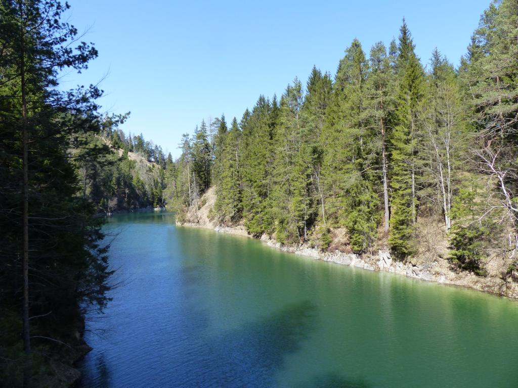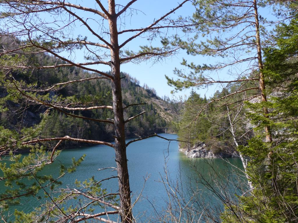 Nach etwa einer Stunde haben Sie die Südseite des fjordartigen Sees bewältigt und Sie erreichen die Forststraße Hagengut – Erlaufklause. Wenn Sie hier links abzweigen, so gelangen Sie zur Jausenstation Ötscherhias und in die Ötschergräben, der Rundweg allerdings führt an dieser Stelle nach rechts und entlang der nördlichen Seeseite zur mächtigen Staumauer Erlaufklause.