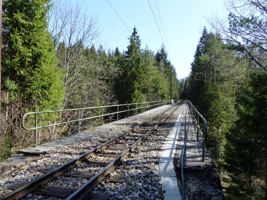 Nach etwa 20 Minuten und einer kurzen Steigung erreichen Sie auf einer kaum befahrenen Asphaltstraße den Bahnhof Erlaufklause – von hier aus können Sie entweder mit der Himmerlstreppe auf der Mariazellerbahn wieder nach Mitterbach fahren, oder Sie wählen den Fußweg zurück zum Ausgangspunkt.
