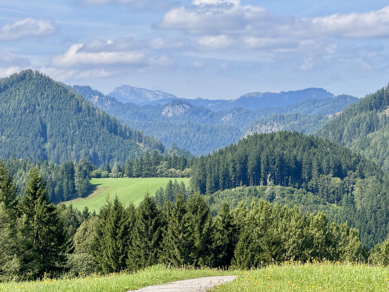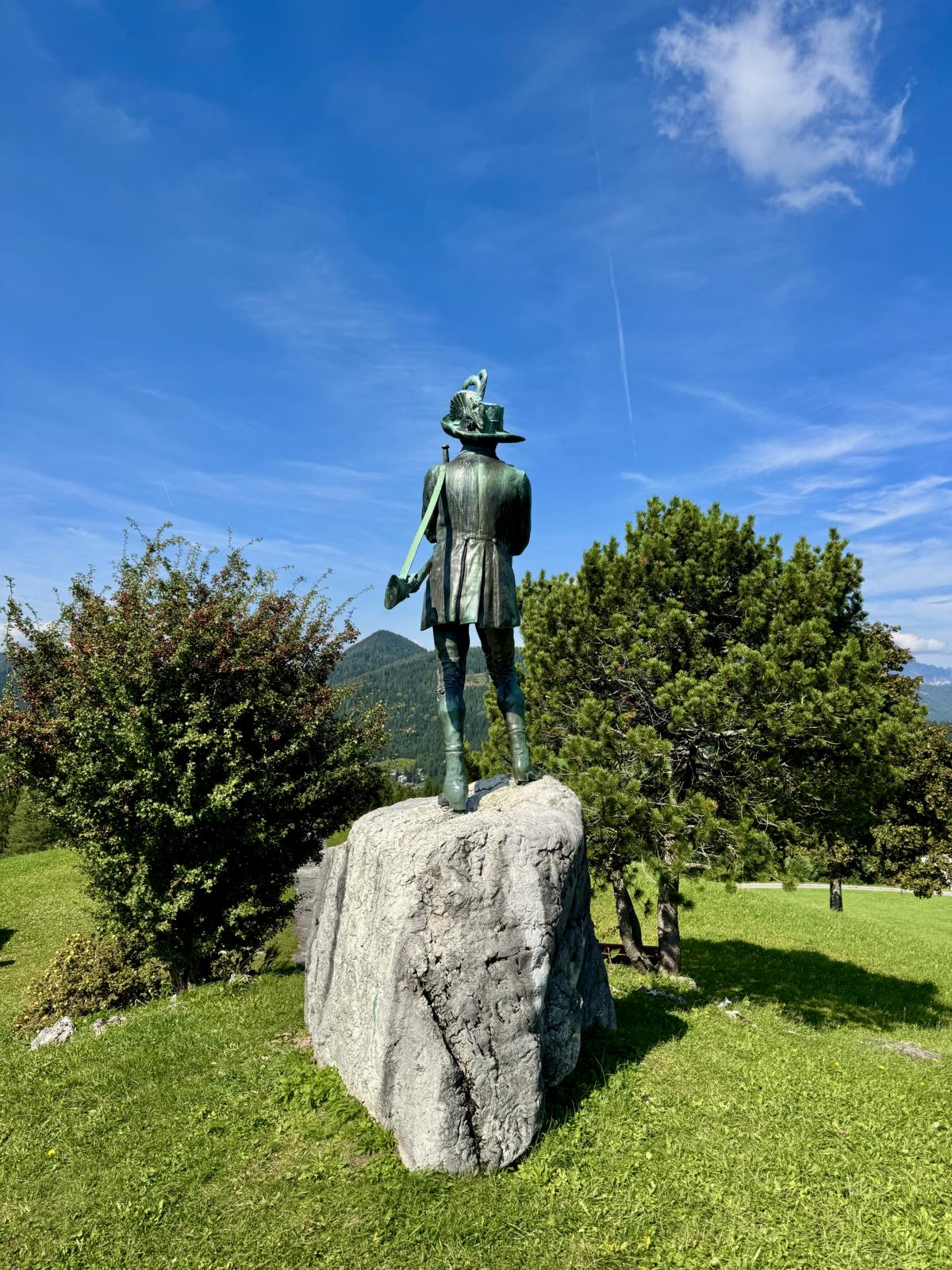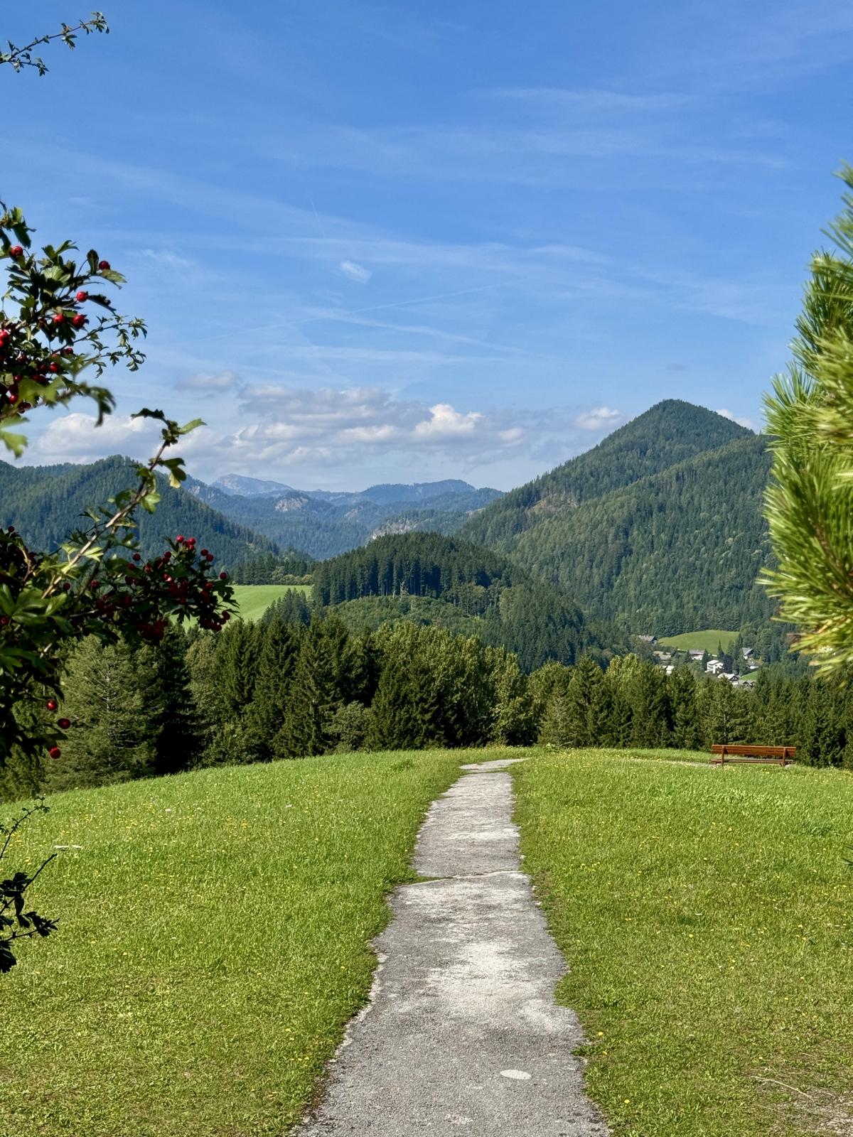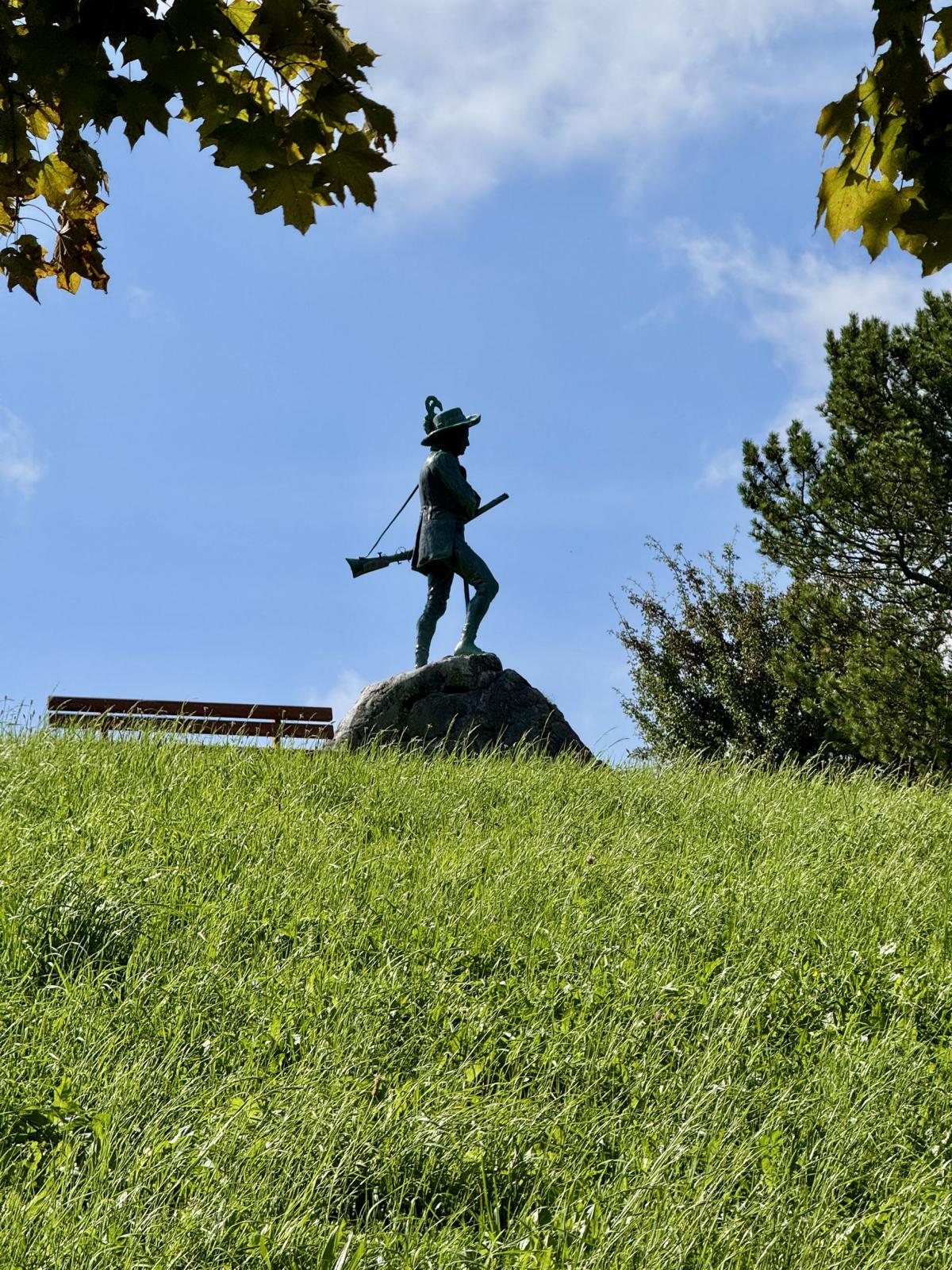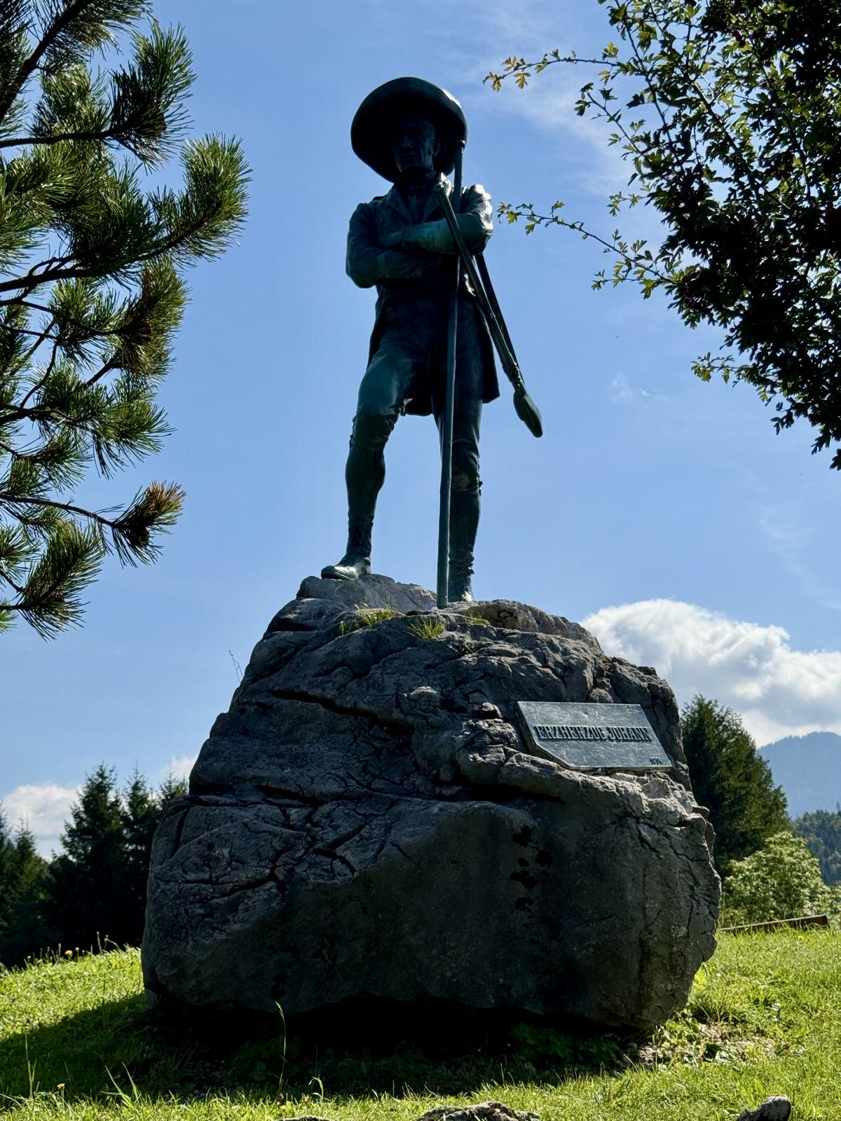 Das Erzherzog Johann Denkmal steht auf dem Vogelbühel – hier finden Sie einen schönen Rastplatz mit prächtigem Panoramablick (Ortsansicht, Bürgeralpe, Tonion, Sauwand, Zellerhut, Gemeindealpe, Ötscher, Dürrenstein) vor.